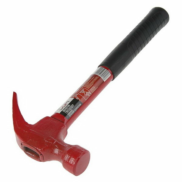Молоток-гвоздодер ЛОМ, металлическая обрезиненная рукоятка, 450 г
