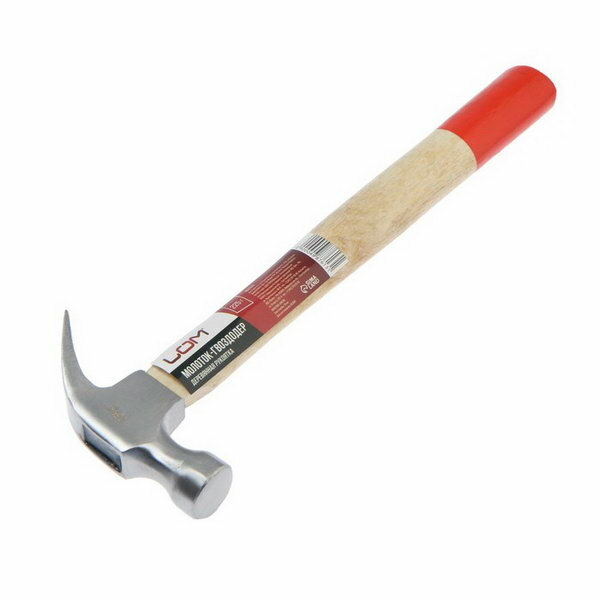 Молоток-гвоздодер LOM, металлическая обрезиненная рукоятка, 450 г