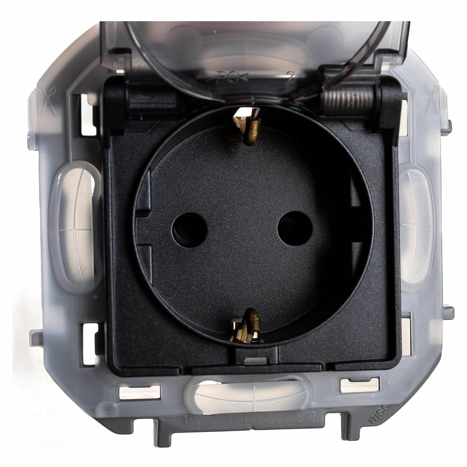 Legrand INSPIRIA Антрацит Розетка 2К+З IP 44 с откидной крышкой и шторками - немецкий стандарт - 16 А - 250 В, Legrand, арт.673743