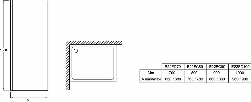 Боковая стенка душевого ограждения Jacob Delafon Contra 90х195см, арт. E22FC90-BL, 8 мм, черный профиль, матовый