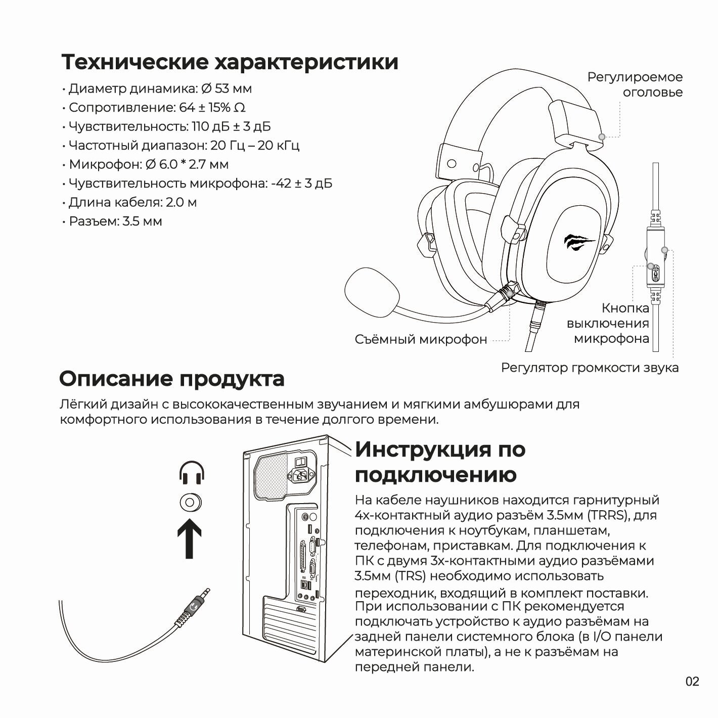 Компьютерная гарнитура Havit H2002D, 3.5 мм, черный, съемный микрофон