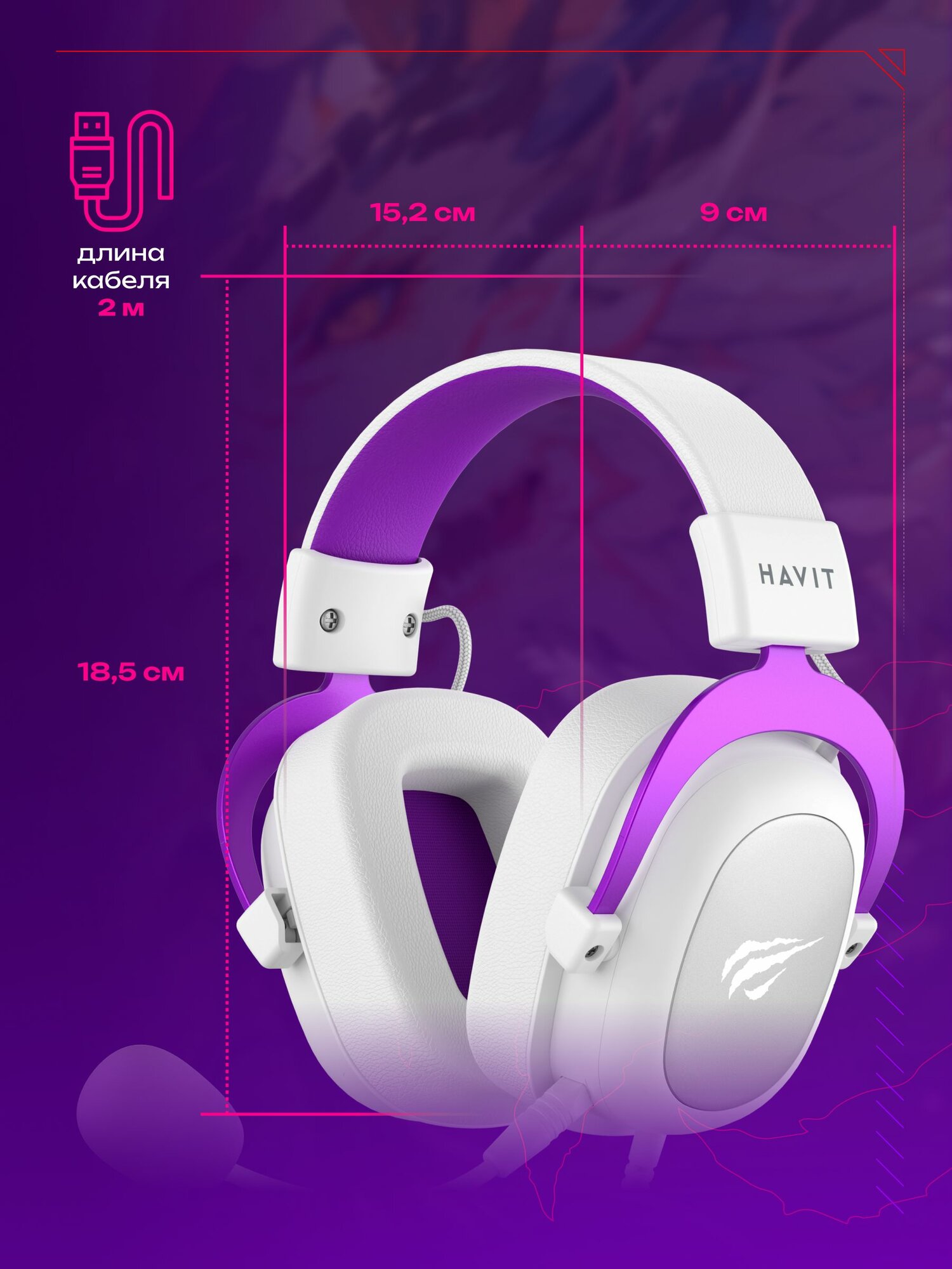 Игровая гарнитура HAVIT H2002d 3,5 мм белый/фиолетовый