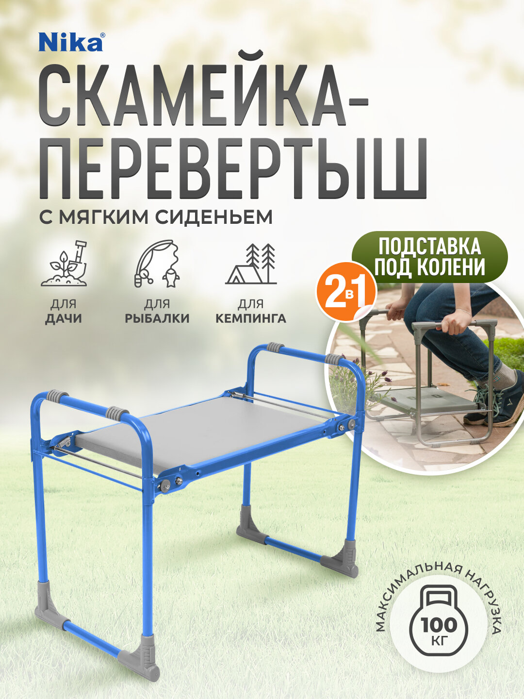 Скамья сад/рыбалка (Перевертыш) голубая до 100кг,каркас металл,сиденье Мягкое/Винилискожа СКМ/Г Nika