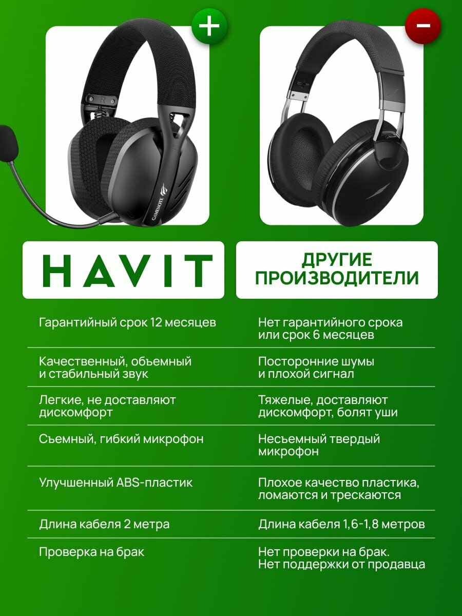 Компьютерная гарнитура Havit H2002D, 3.5 мм, черный, съемный микрофон