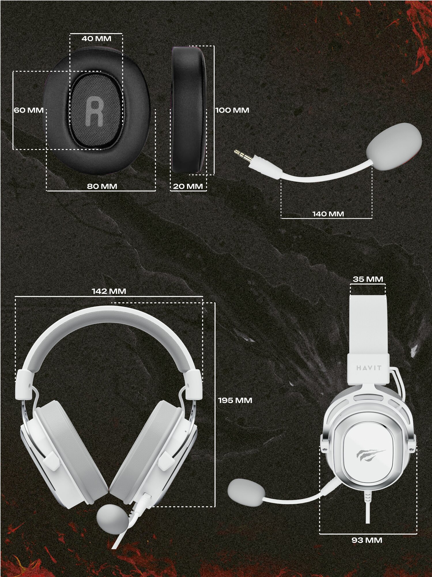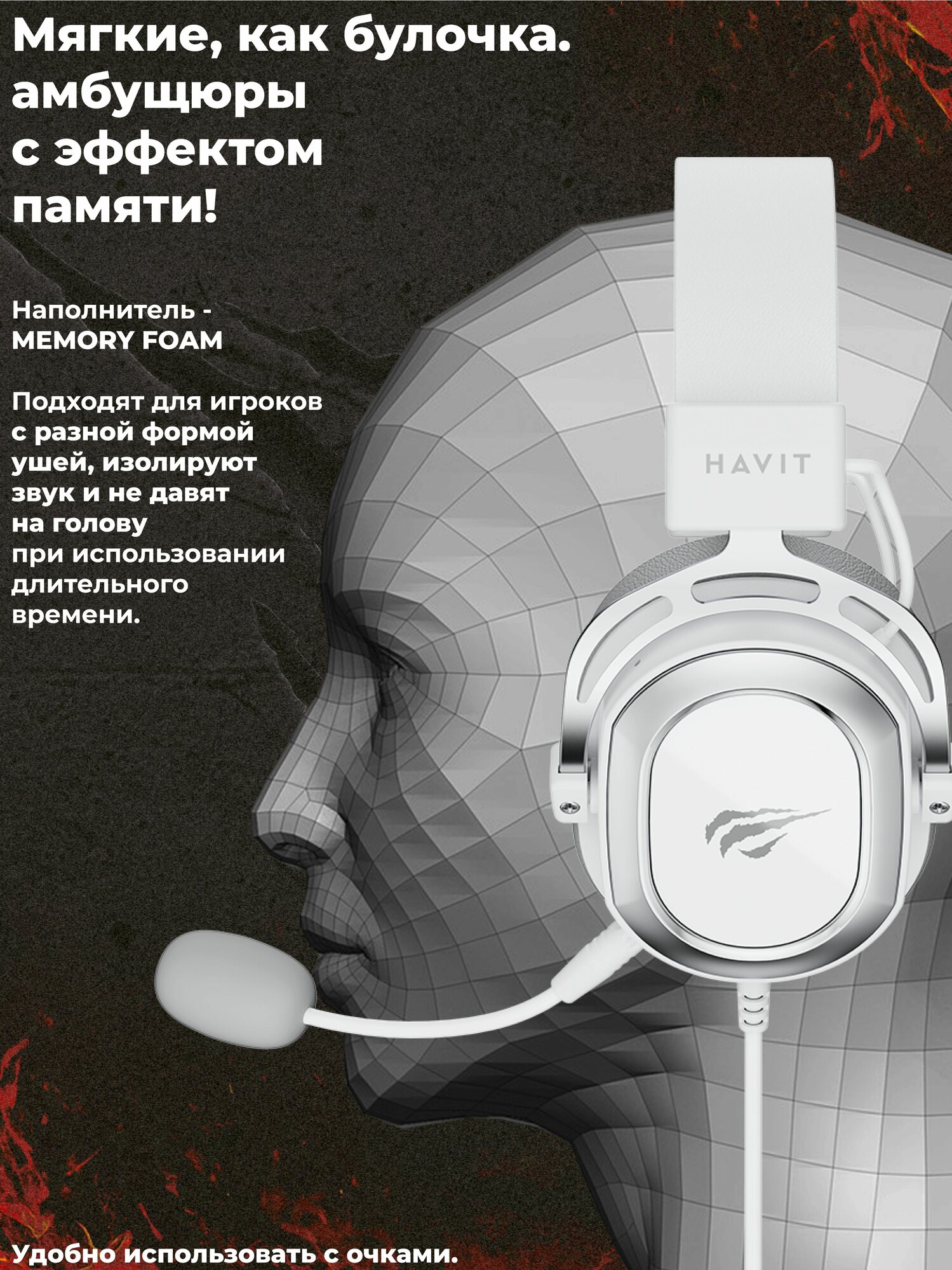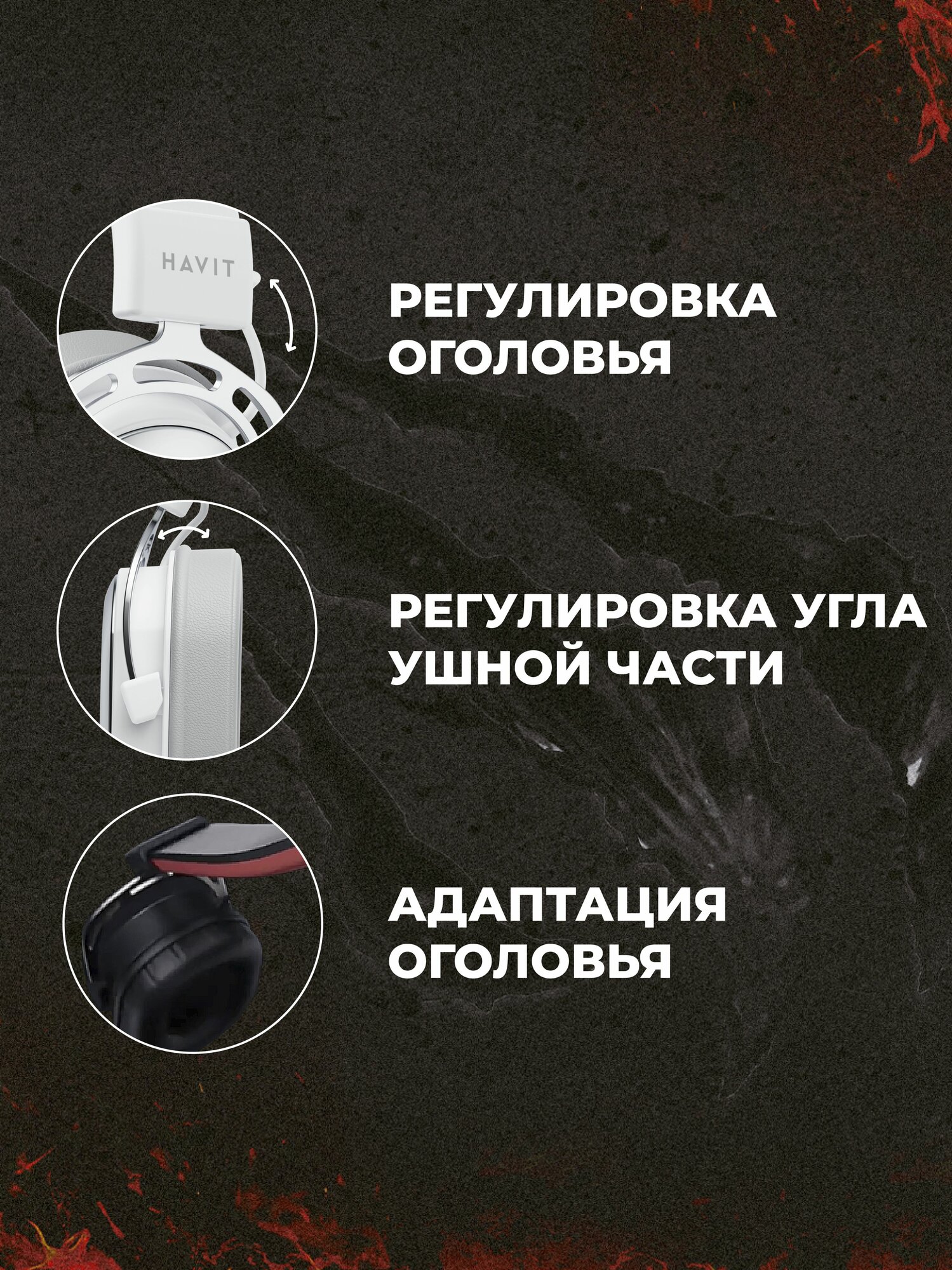 Игровая гарнитура HAVIT H2002d, 3,5 мм, белый/красный, съемный микрофон