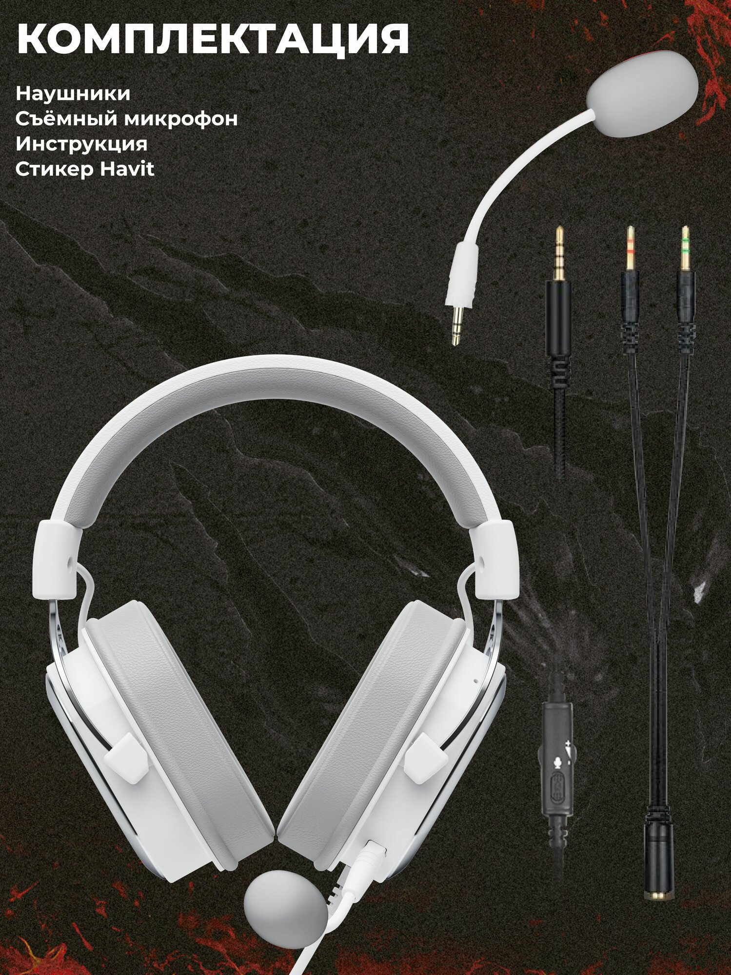 Купить Наушники игровые, геймерские, проводные с микрофоном Havit H2008d белый 3.5 jack