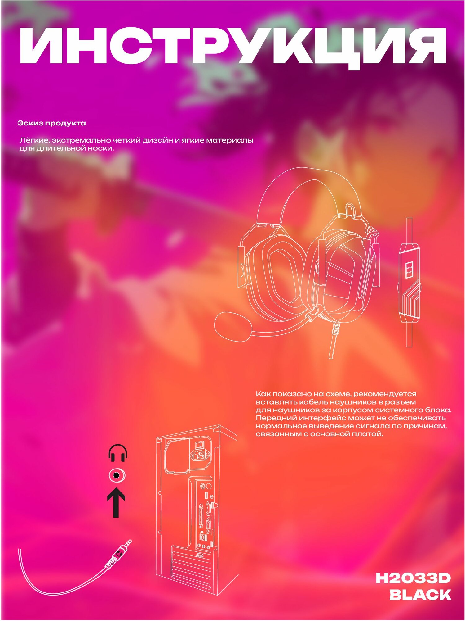 Наушники игровые H2002D проводные. Геймерская гарнитура с микрофоном для ПК, компьютера, ноутбука чёрный 3.5 jack