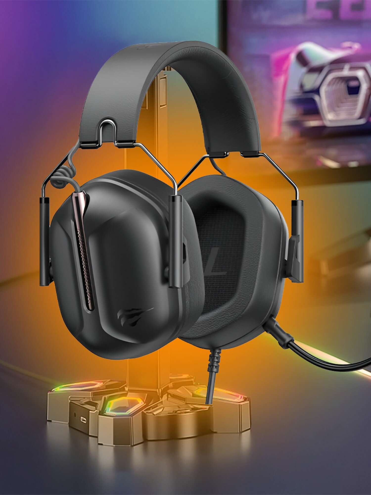 Проводные игровые (геймерские) наушники Havit H659d накладные для компьютера с микрофоном черные, RGB подсветка