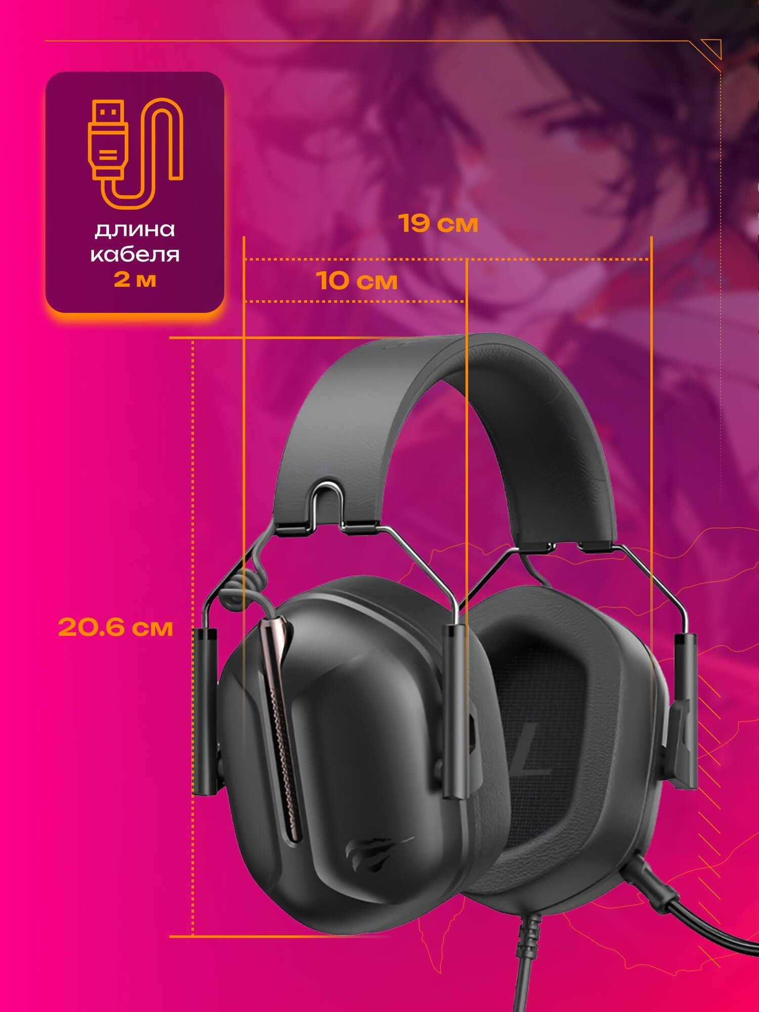 Наушники игровые проводные / Гарнитура с микрофоном для ПК, компьютера, ноутбука Havit H2007U чёрный USB