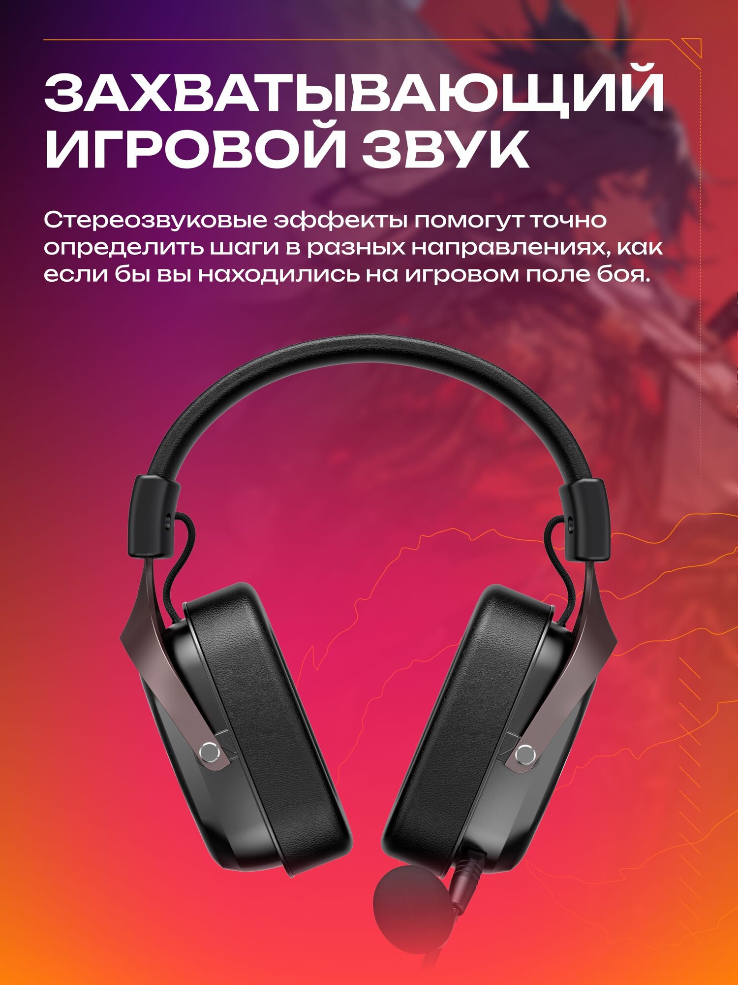 Наушники игровые VOROTEX V2002D проводные. Геймерская гарнитура с микрофоном для ПК, компьютера, ноутбука, jack 3,5 мм, чёрный