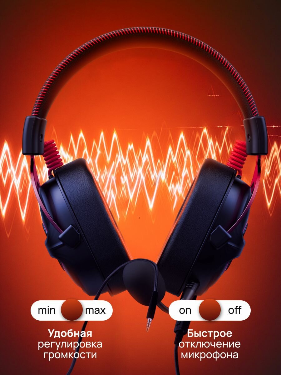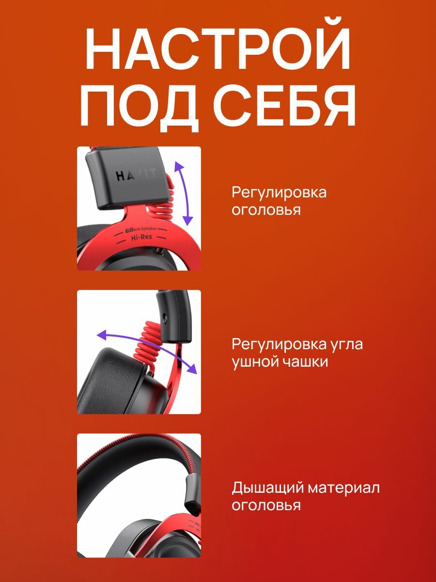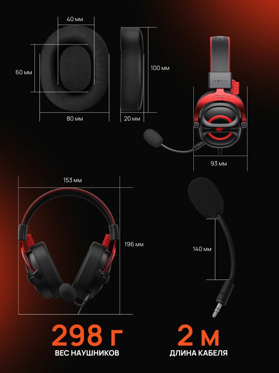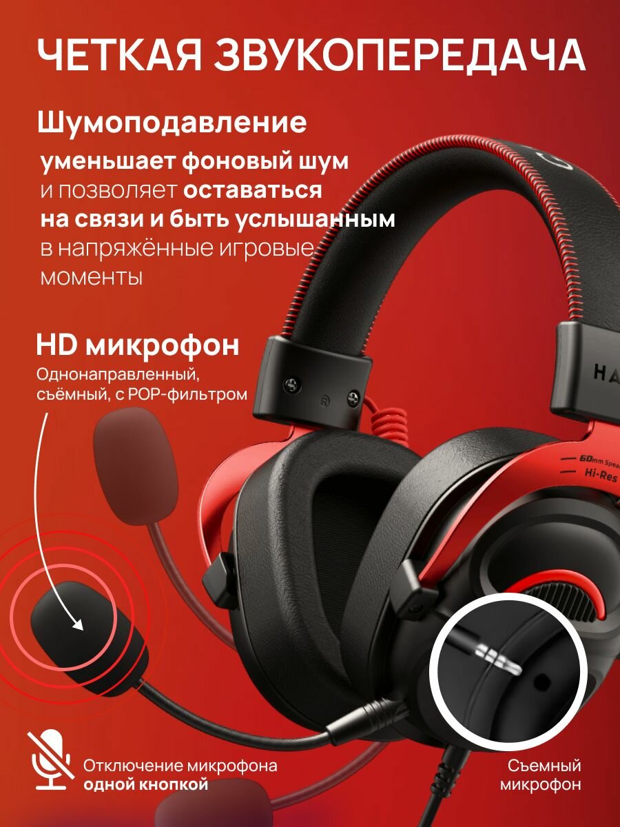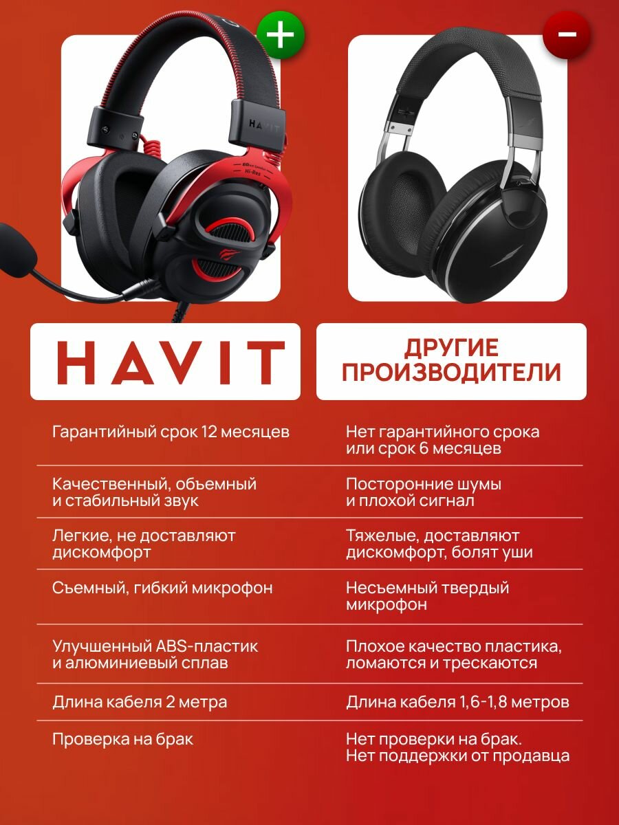 Купить Наушники игровые HAVIT H2002E PRO проводные. Геймерская гарнитура с микрофоном для ПК, компьютера, ноутбука чёрный+красный 3.5 jack