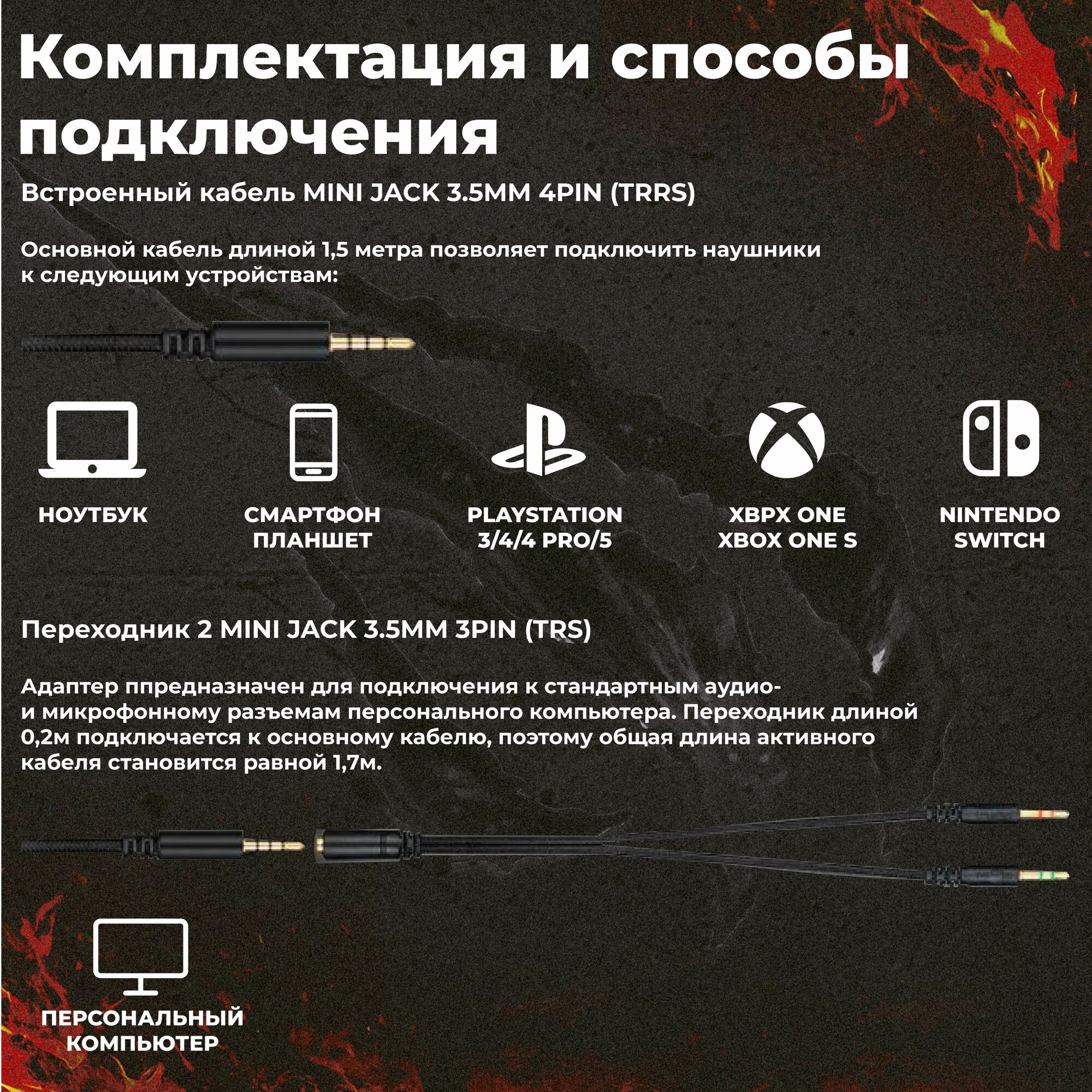Наушники игровые VOROTEX V2002D проводные. Геймерская гарнитура с микрофоном для ПК, компьютера, ноутбука, jack 3,5 мм, чёрный
