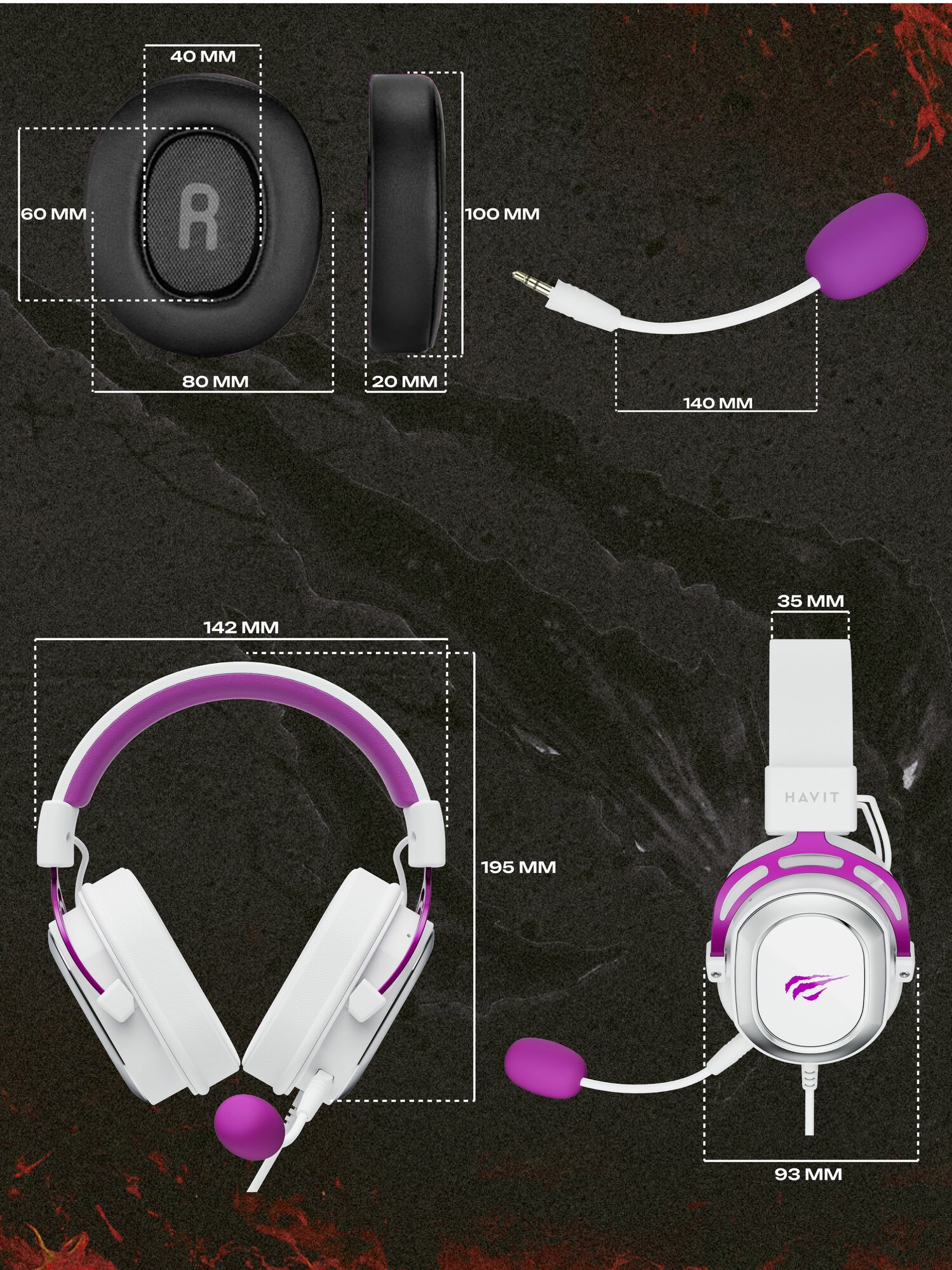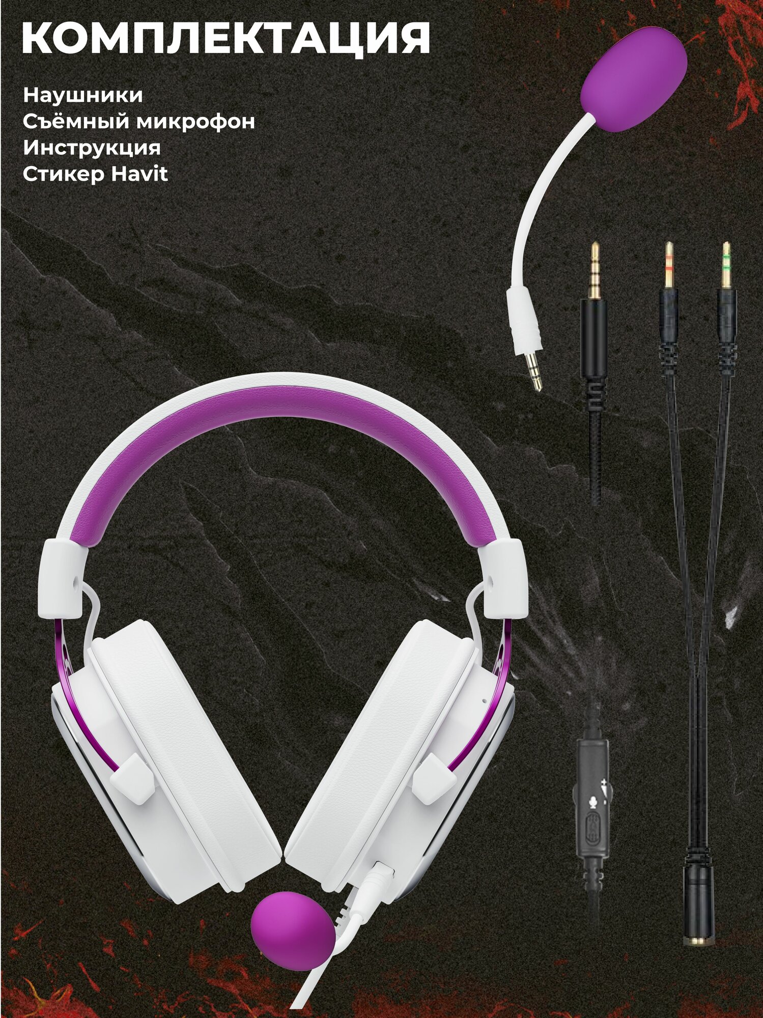 Игровая гарнитура HAVIT H2002d 3,5 мм белый/фиолетовый