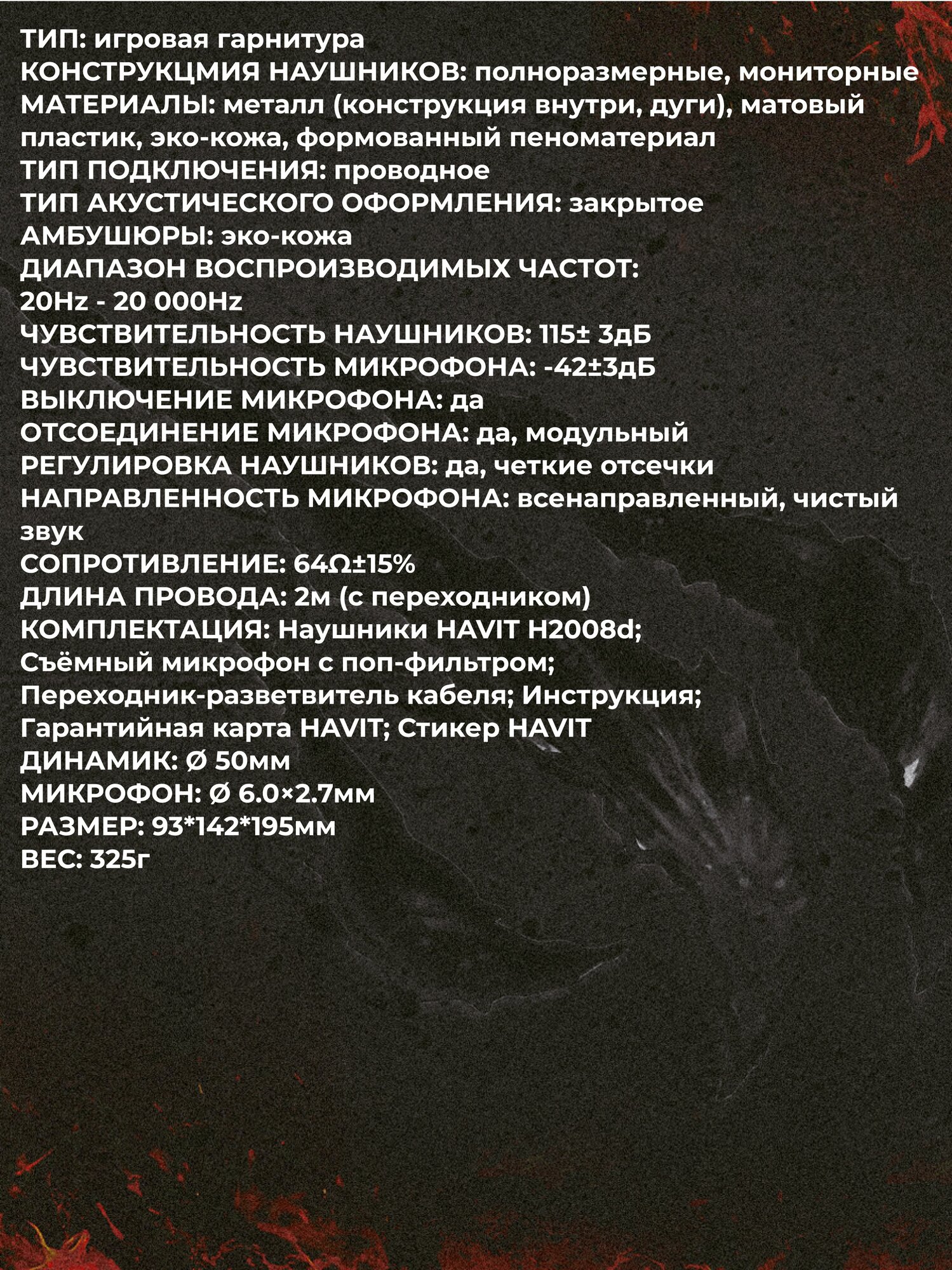 Игровая гарнитура HAVIT H2002d, 3,5 мм, белый/красный, съемный микрофон