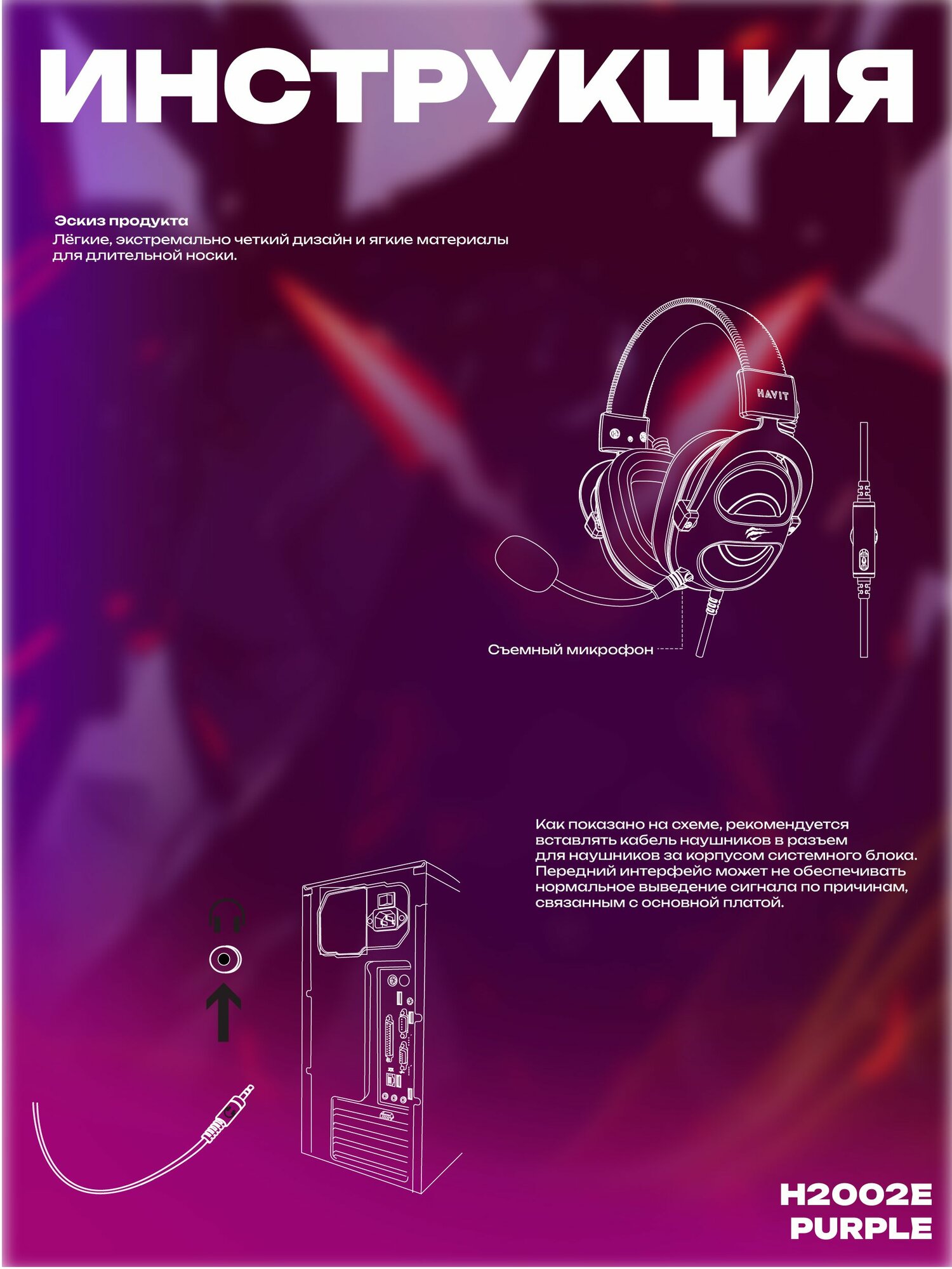 Купить Наушники игровые проводные. Геймерская Гарнитура с микрофоном для ПК, компьютера, ноутбука Havit H2002E белый/фиолетовый 3.5 jack