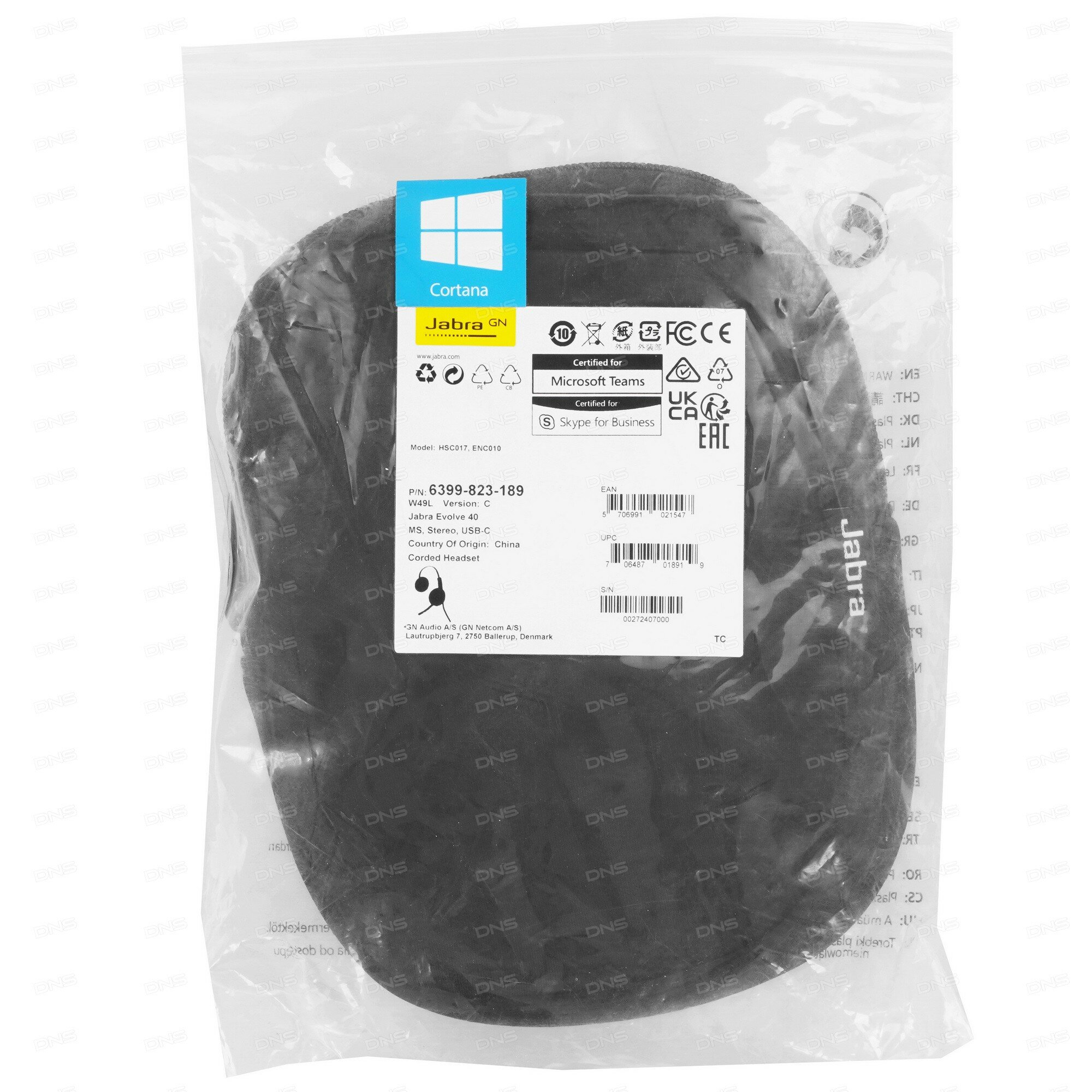 Гарнитура Jabra EVOLVE 40 MS, для компьютера, накладные, черный [6399-823-189]