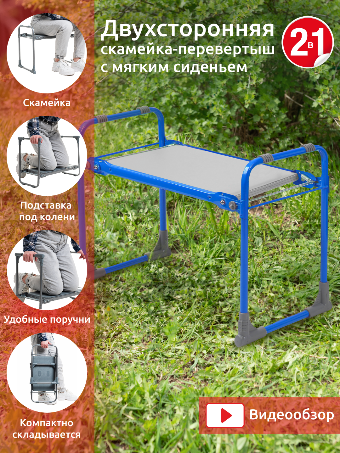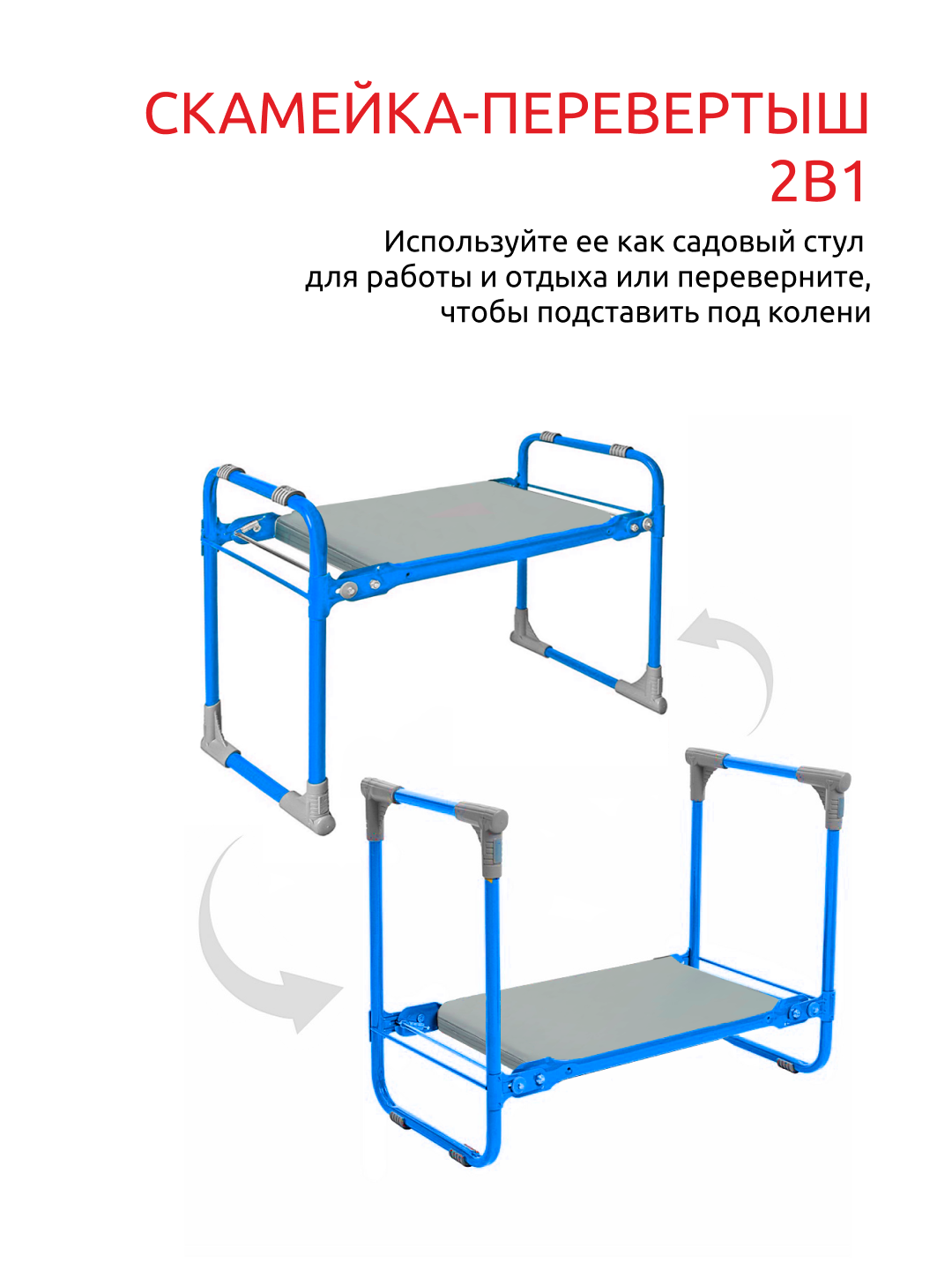 Скамейка-перевёртыш садовая складная 56х30х42.5 см, голубая, макс. нагр. 100 кг, с мягким