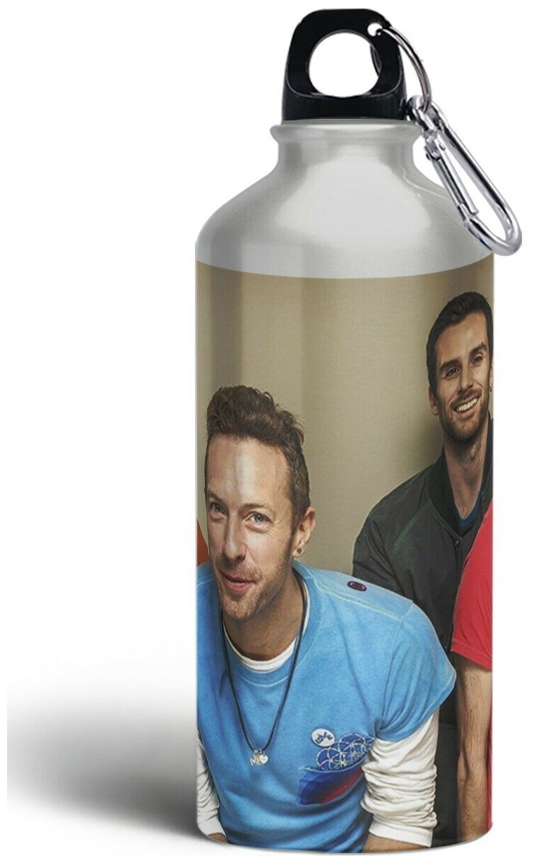 Бутылка спортивная, туристическая фляга, 500мл с карабином Coldplay(Крис Мартин, Джонни Баклэнд, Imagine Dragons) - 1015 интересное: