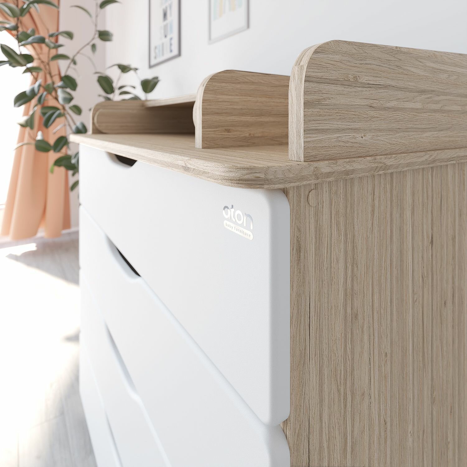 Атон Комод детский с пеленальным столиком Сириус-2 Wood 804 ПВХ, белый премиум, 4 ящика