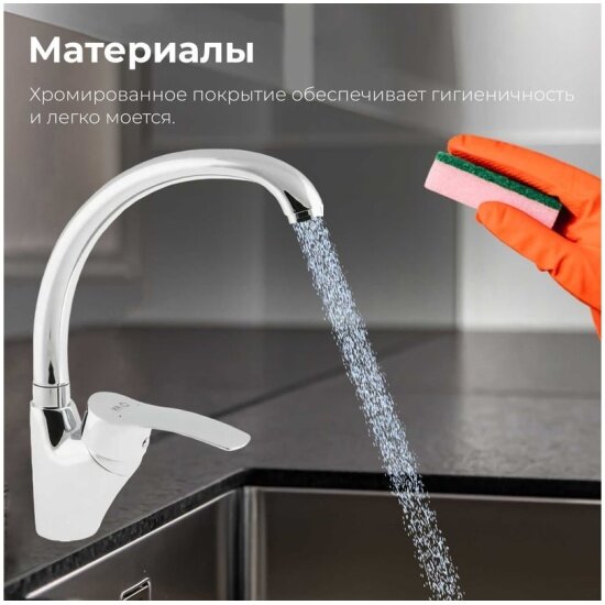 Смеситель для кухни, раковины с поворотным высоким изливом, аэратор AV Engineering (AVQUN4-B088-234)