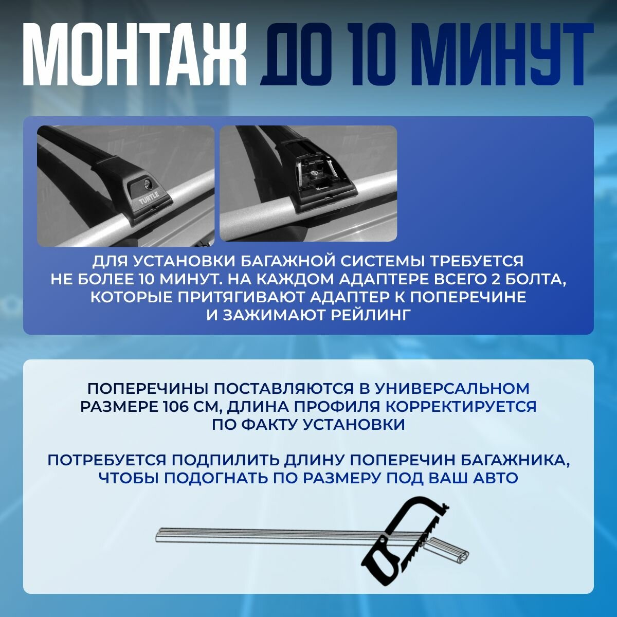 СохранитьБагажник Turtle Tourmaline V1 на рейлинги с просветом (Аэродинамические поперечины с замком) интересное: