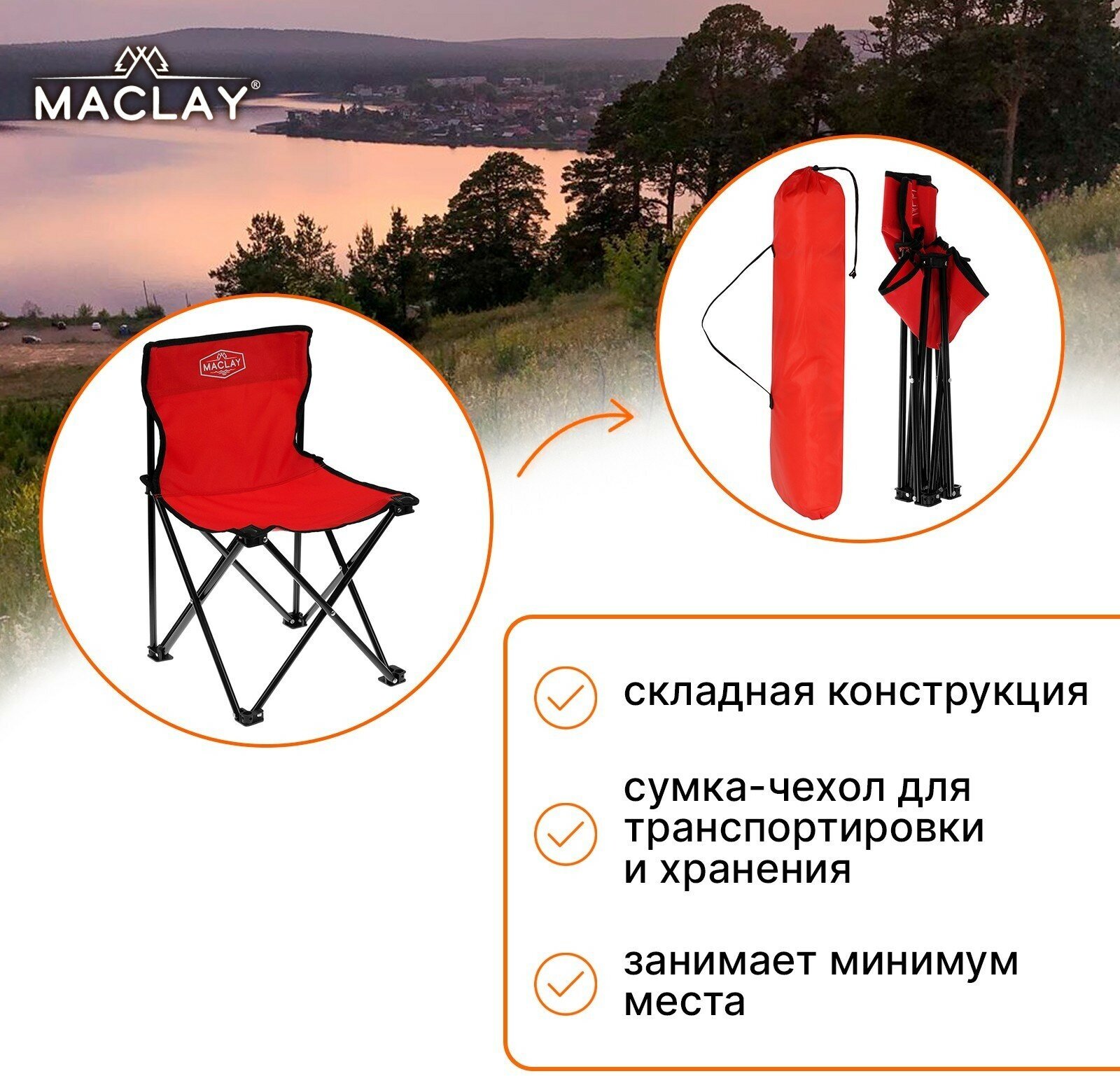 Кресло Maclay, туристическое, складное, до 80 кг, размер 35 х 35 х 56 см, цвет красный