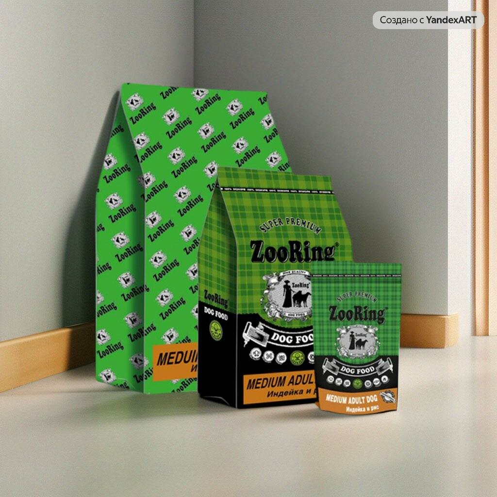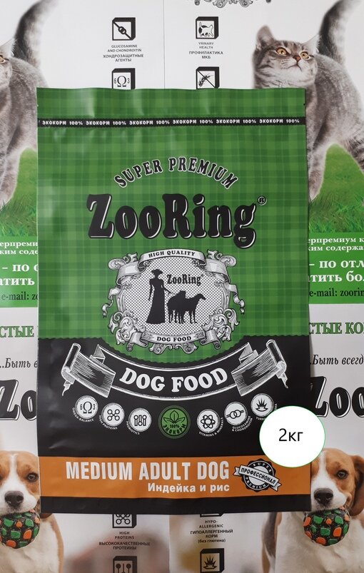 Купить Сухой корм ZooRing для молодых и взрослых собак всех пород MEDIUM ADULT DOG Индейка и рис 1уп. х 2кг.