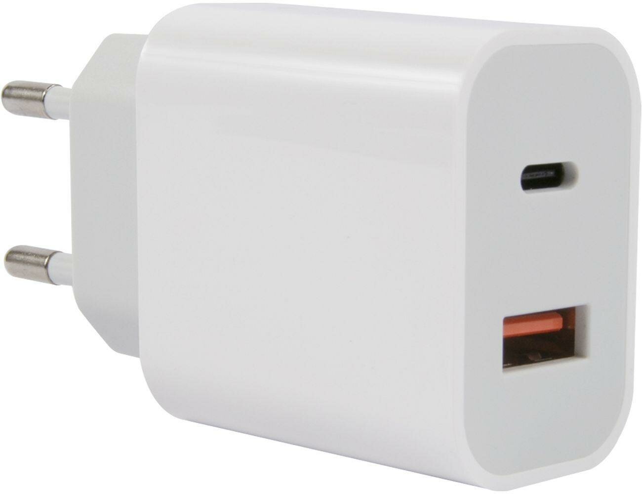Зарядное устройство сетевое Red Line, USB+Type-C,3A,PD 20W,бел, УТ000024925