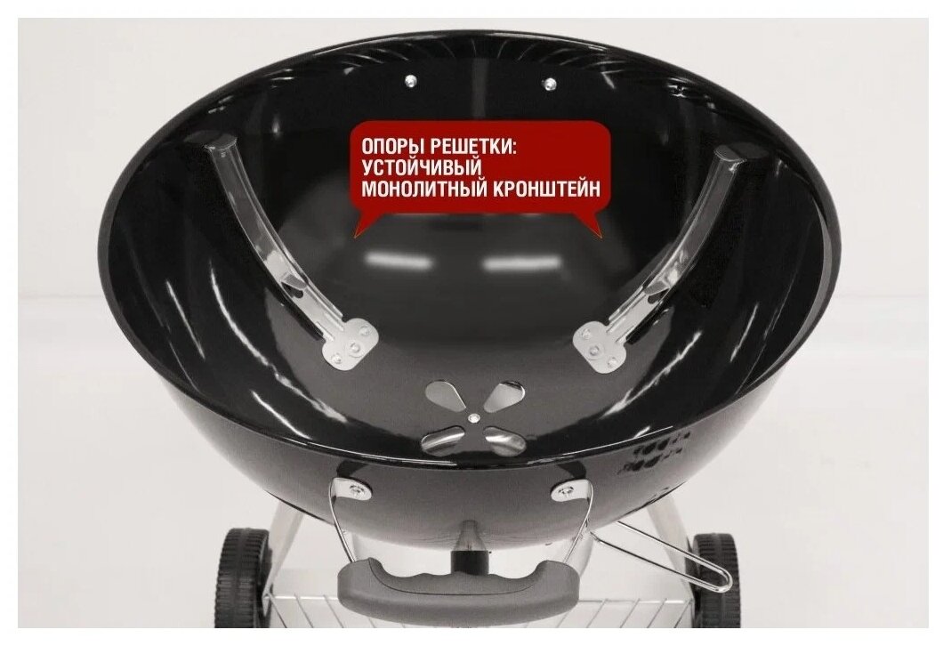 | Минусы: | Термометр пришёл с гнутым щупом и не работает, на кромке самой чаши имеются сколы краски. Почти копия гриля известного бренда - не так грамотно продумана система регулировки подачи воздуха снизу и удаления золы. |