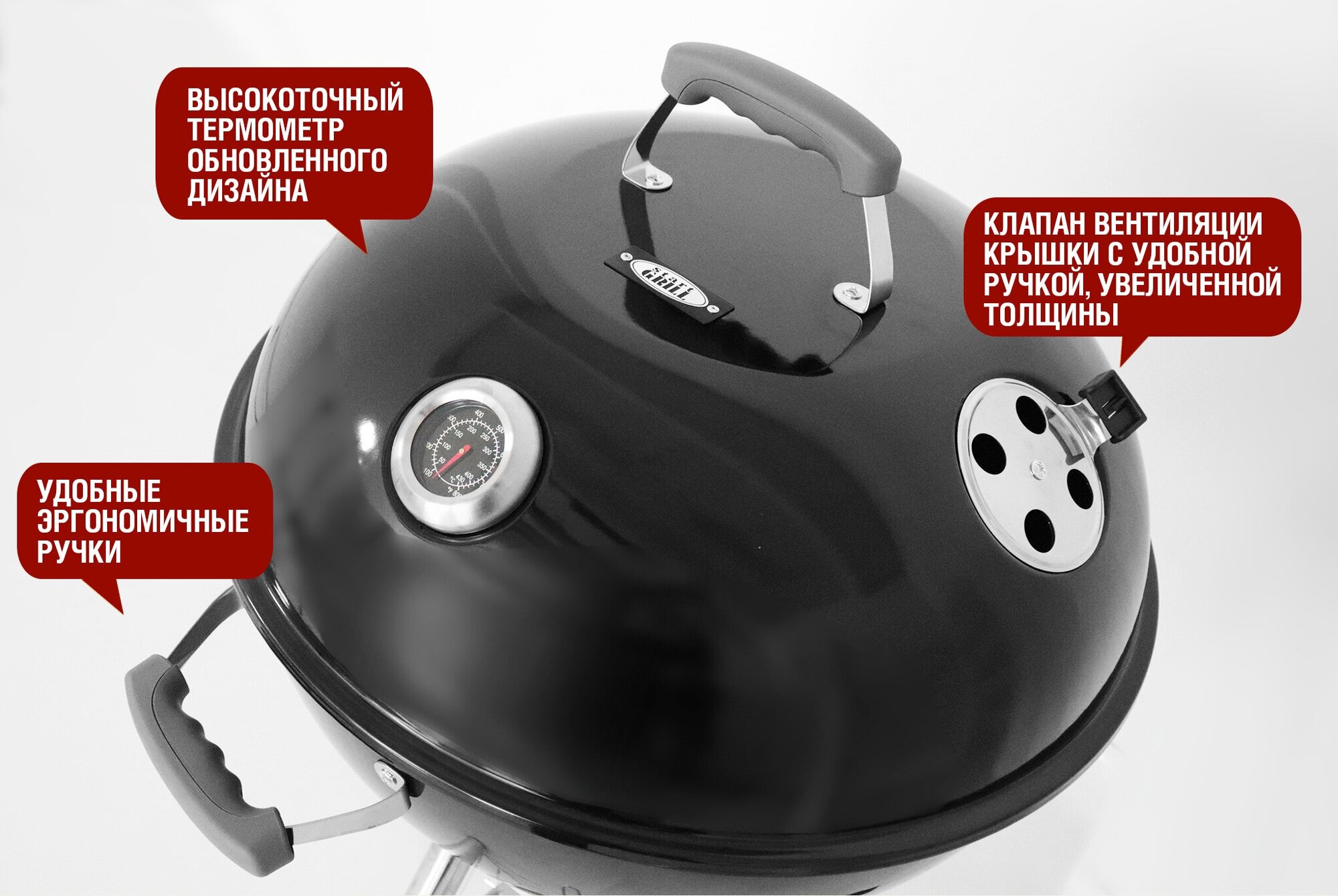 | Особенности | колёса / крышка / решетка / термометр |