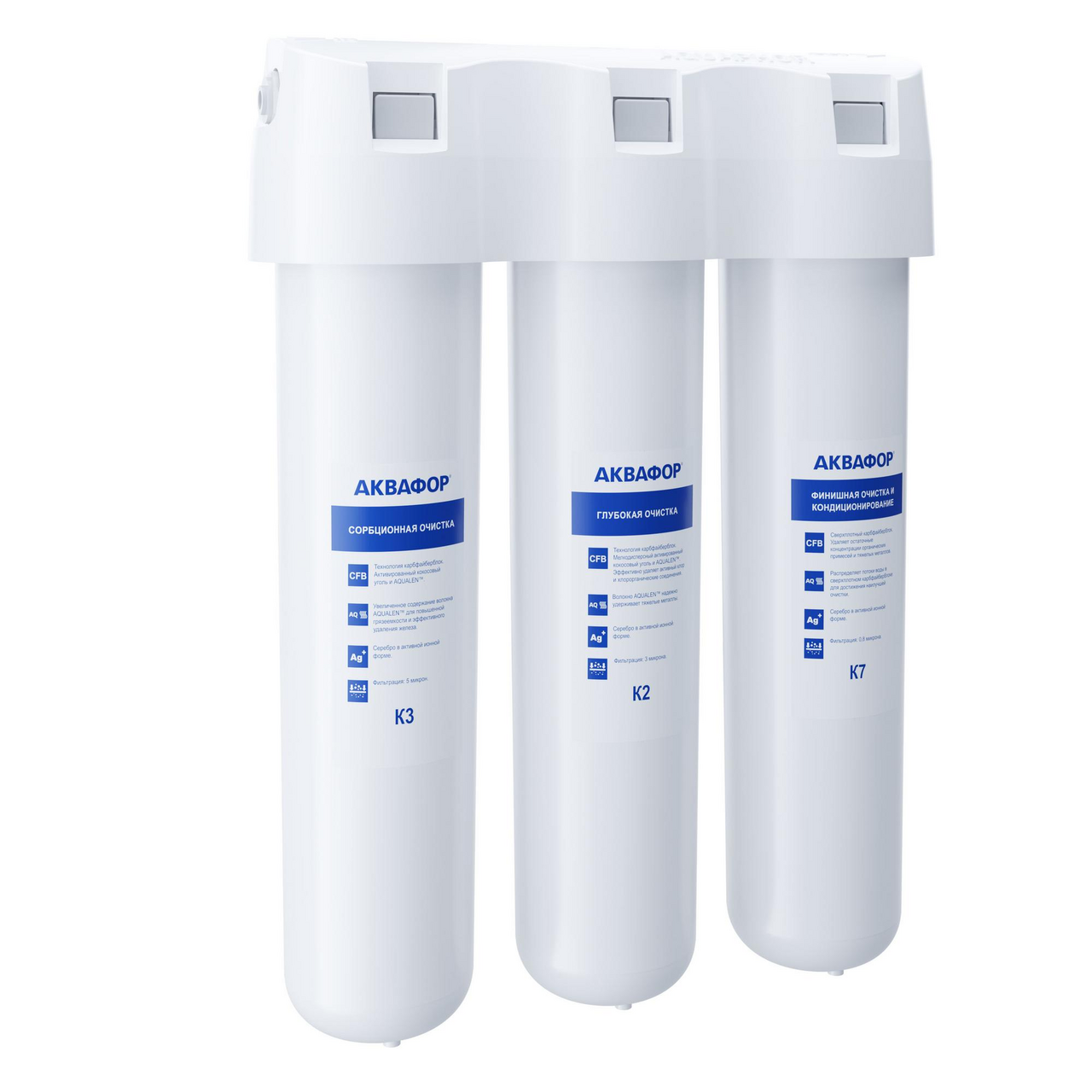 Купить Комплект оборудования c механической фильтрацией, обезжелезиванием, сорбция, умягчением, защитой от накипи АКВАФОР Кристалл для мягкой, жесткой воды 3 ступени