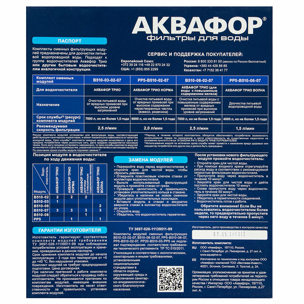 Комплект сменных модулей АКВАФОР В510-03-02-07, ресурс 6000 л интересное: