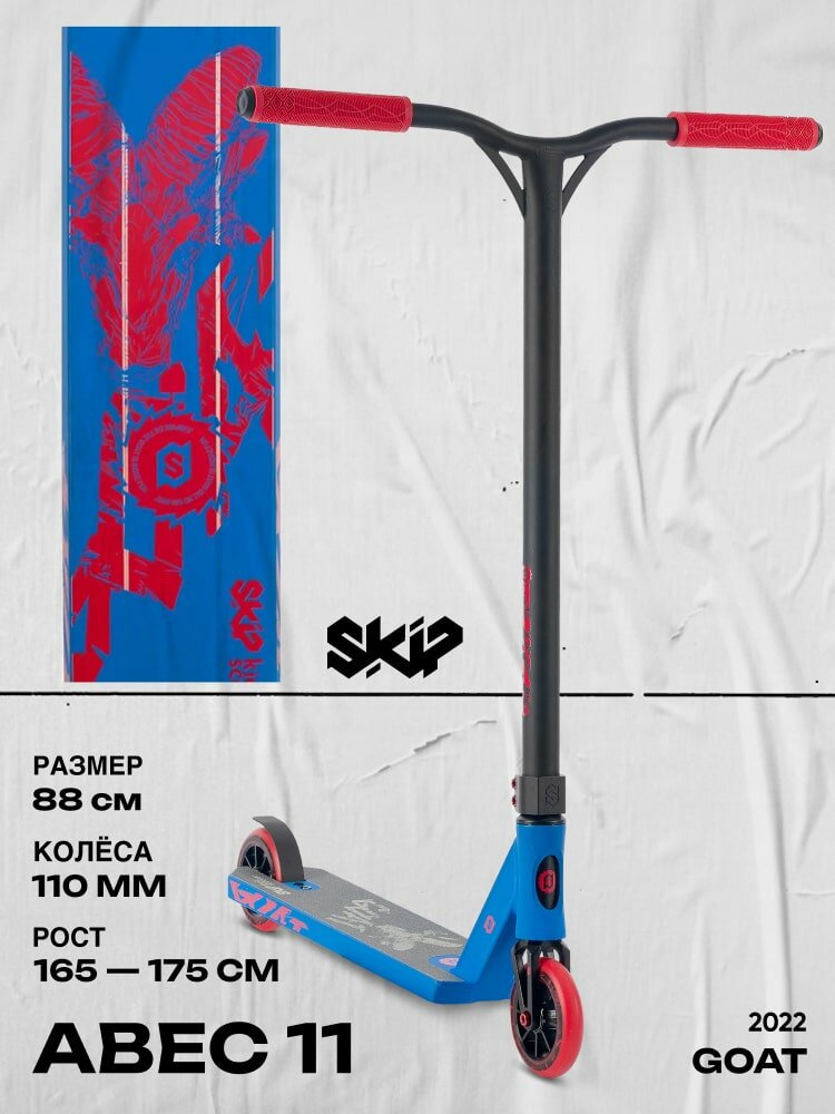 Самокат SKIP Goat (2023) трюковой для взрослых, для детей, алюминиевая дека, стальной руль, компрессия HIC, красно-синий цвет, рост 155-165