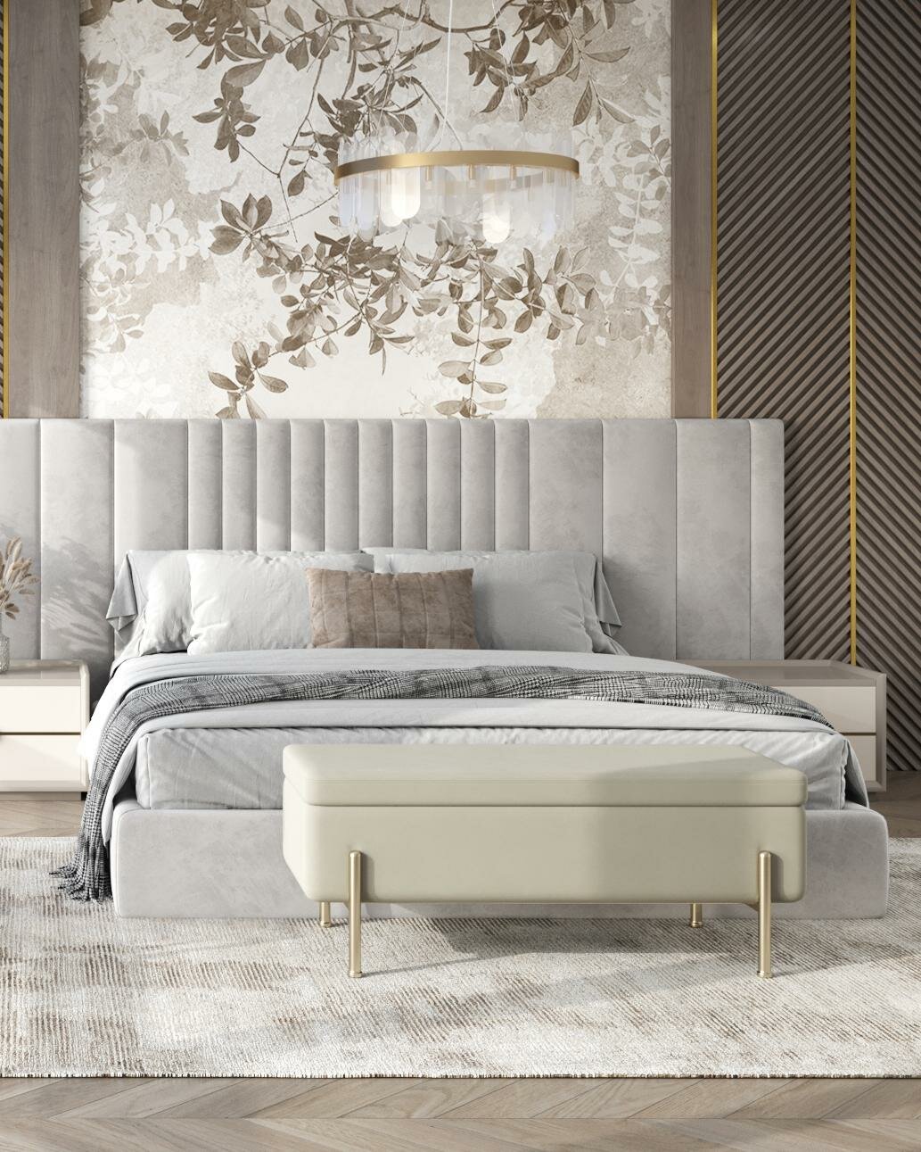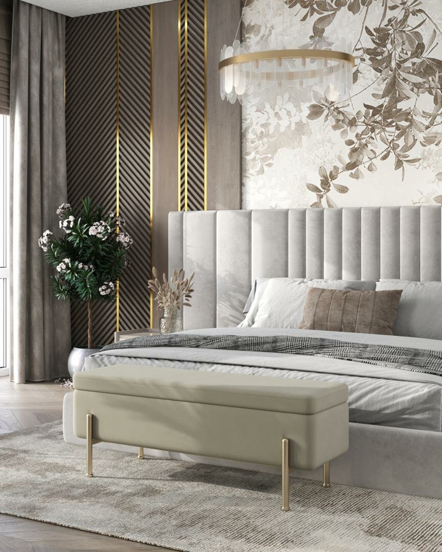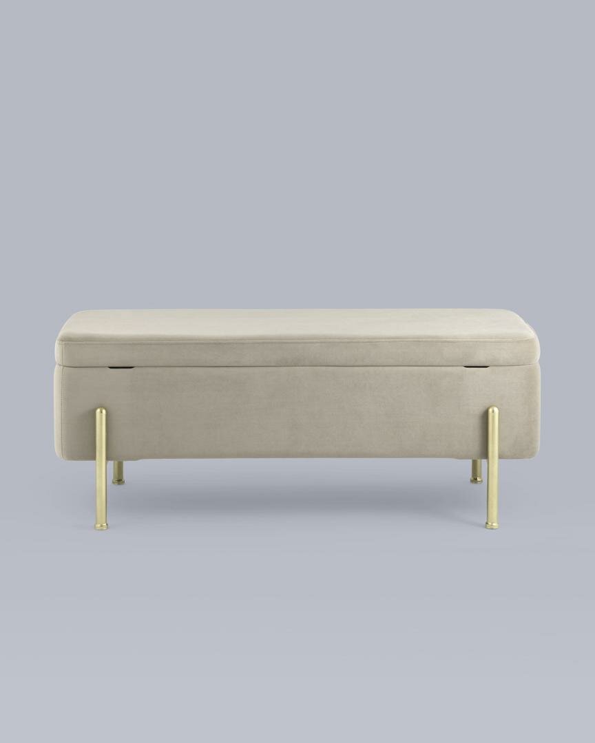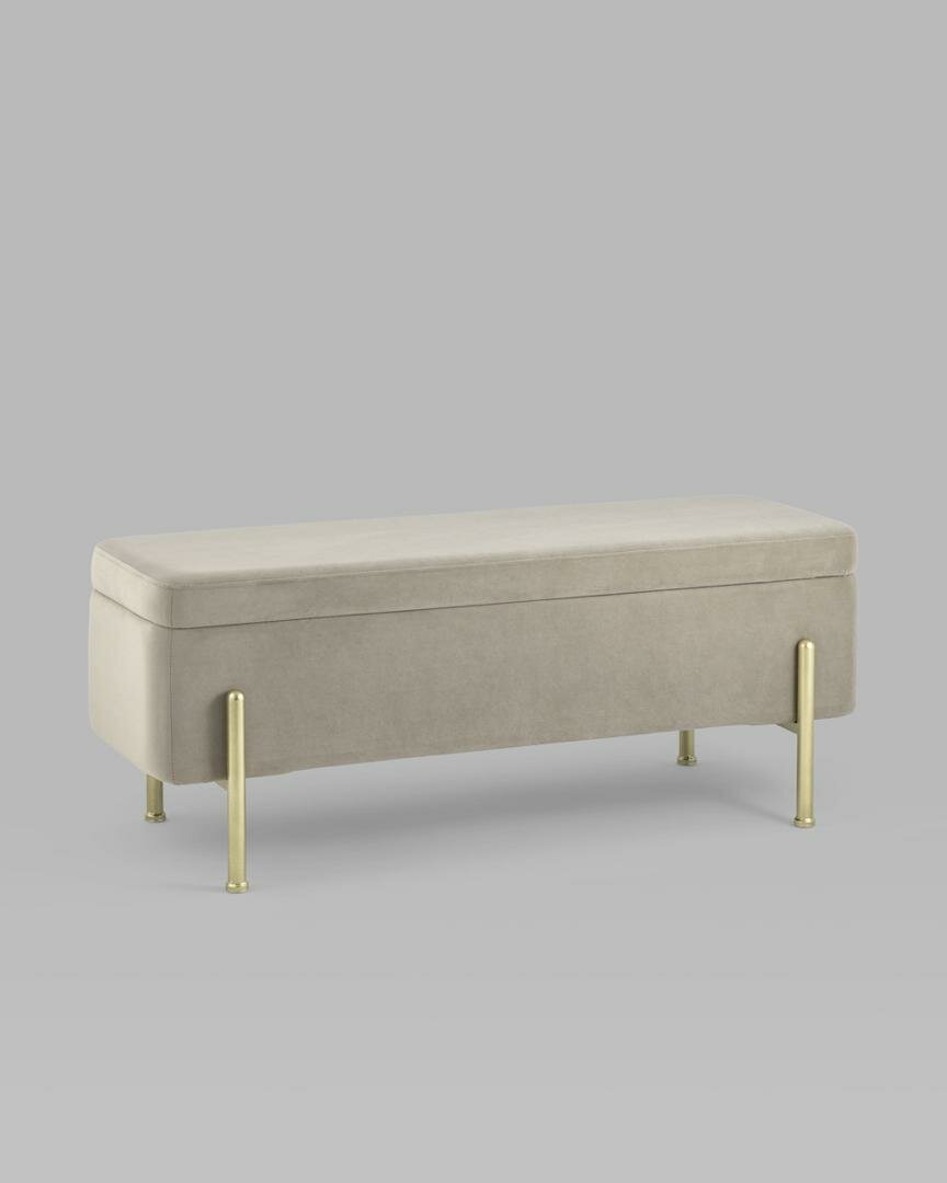 Банкетка Болейн с ящиком велюр серый ножки из металла цвет золото