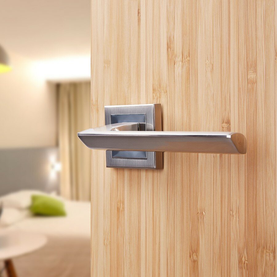 СохранитьРучка дверная BUSSARE ASPECTO A-64-30 S.CHROME (сатинированный хром) межкомнатная на раздельном основании, комплект интересное: