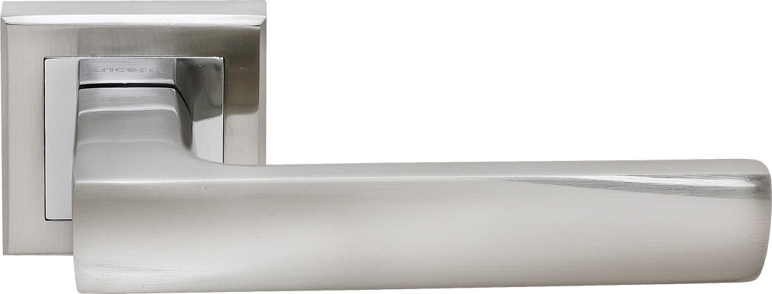 Ручка дверная Rucetti, на квадратной розетке, RAP 14-S SN/CP белый никель/хром