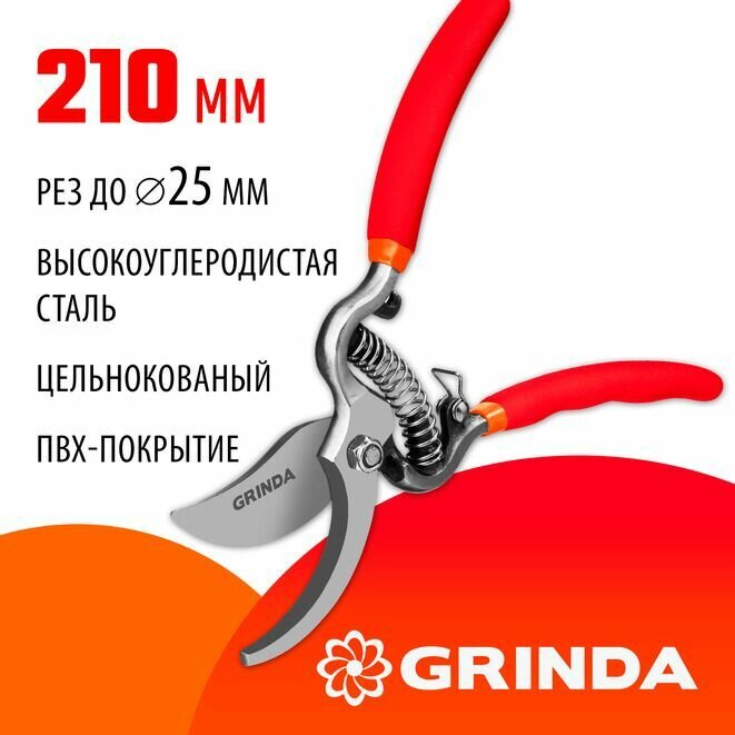 GRINDA G-5 210 мм, цельнокованый с эргономичными рукоятками, Плоскостной секатор (423105)