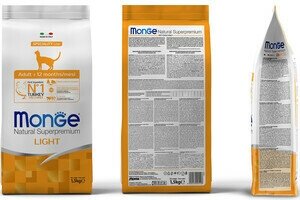 Ниже Вы можете прочитать отзывы на Корм Monge "Speciality Line Light", для кошек, сухой, низкокалорийный, индейка, 1.5кг, ознакомится с подробными характеристиками, посмотреть интересные обзоры и фотографии на Корм Monge "Speciality Line Light", для кошек, сухой, низкокалорийный, индейка, 1.5кг.