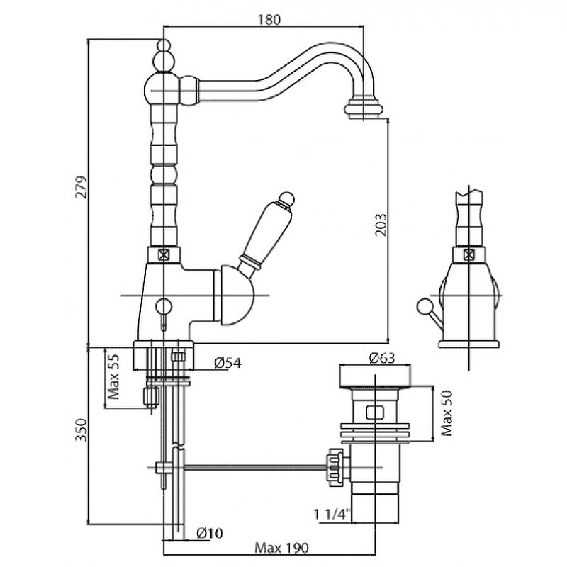 Cezares Смеситель Cezares ELITE-LSM2-01-Bi для раковины, с донным клапаном, хром,ручка белая