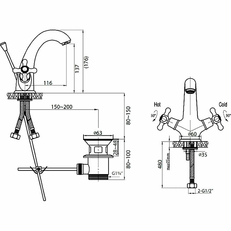 Смеситель для раковины с донным клапаном хром, ручки хром Cezares Golf GOLF-LS1-01