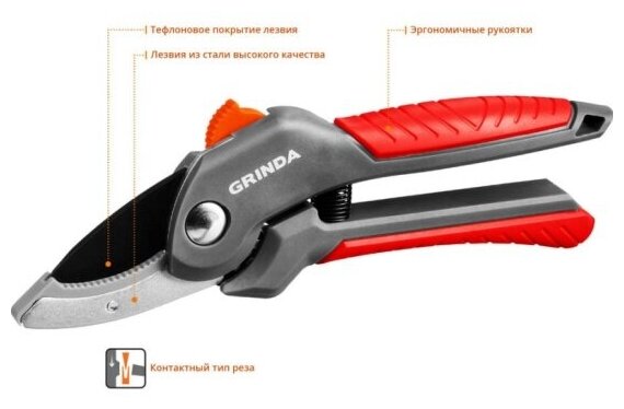 GRINDA G-24 200 мм, с двухкомпонентными рукоятками, Контактный секатор (423124)