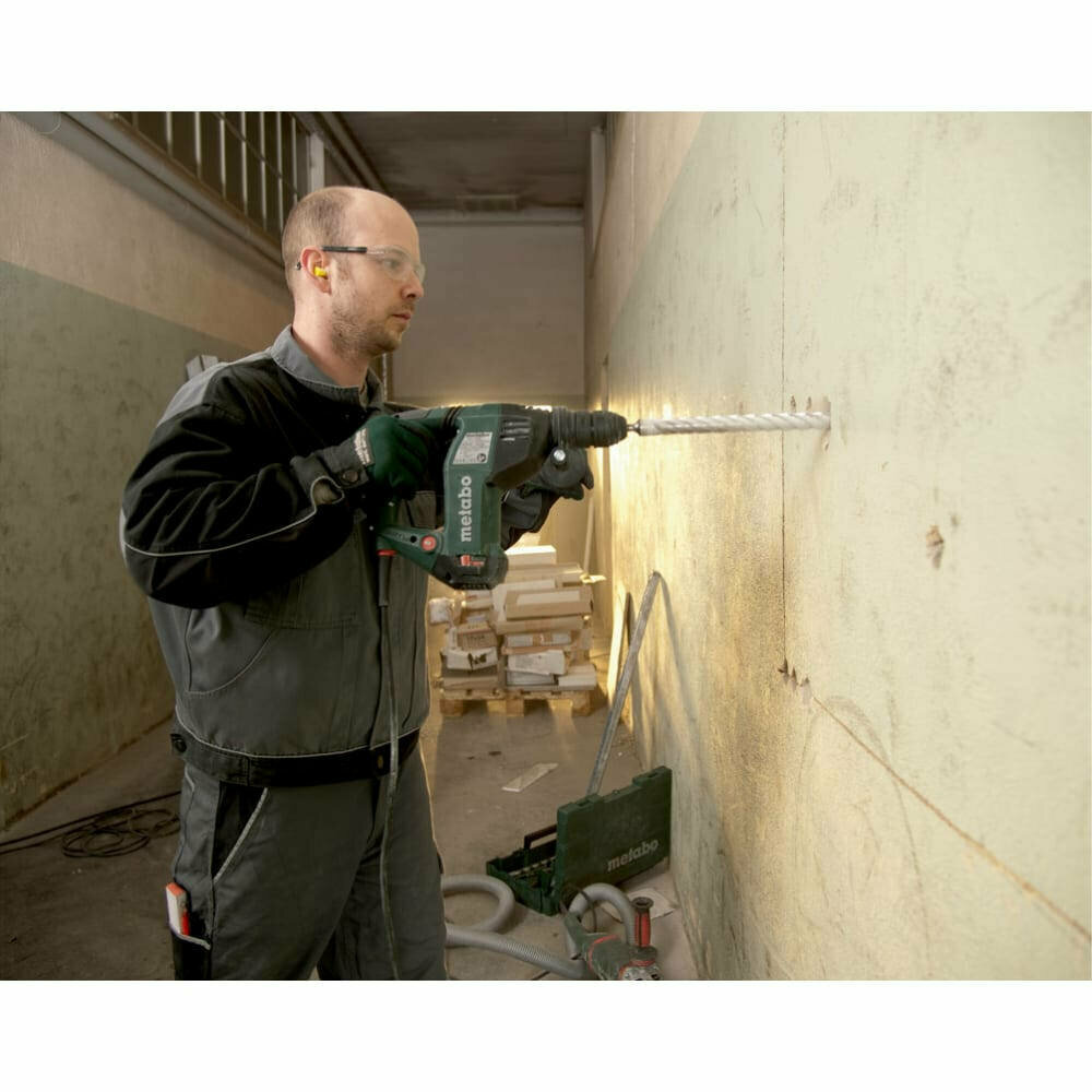 | Комплектация | патрон перфоратора для инструментов с хвостовиком SDS-plus, быстрозажимной сверлильный патрон для инструментов с цилиндрическим хвостовиком, дополнительная рукоятка Metabo VibraTech (MVT), ограничитель глубины сверления, кейс metaBOX 165 L |