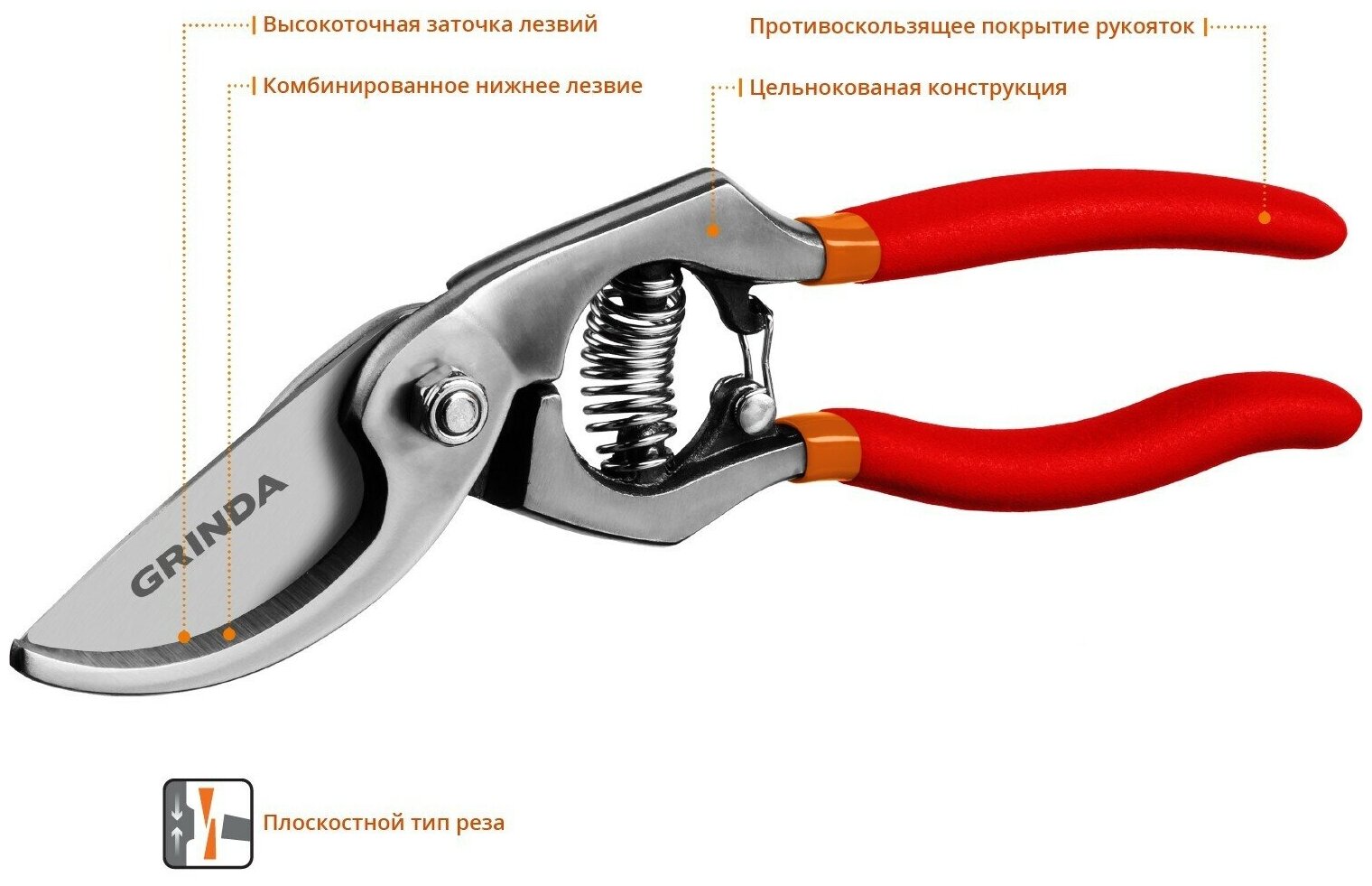 GRINDA G-7 210 мм, с направленным под углом лезвием, цельнокованый, Плоскостной секатор (423107)