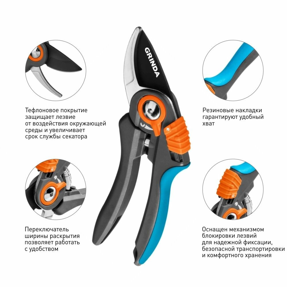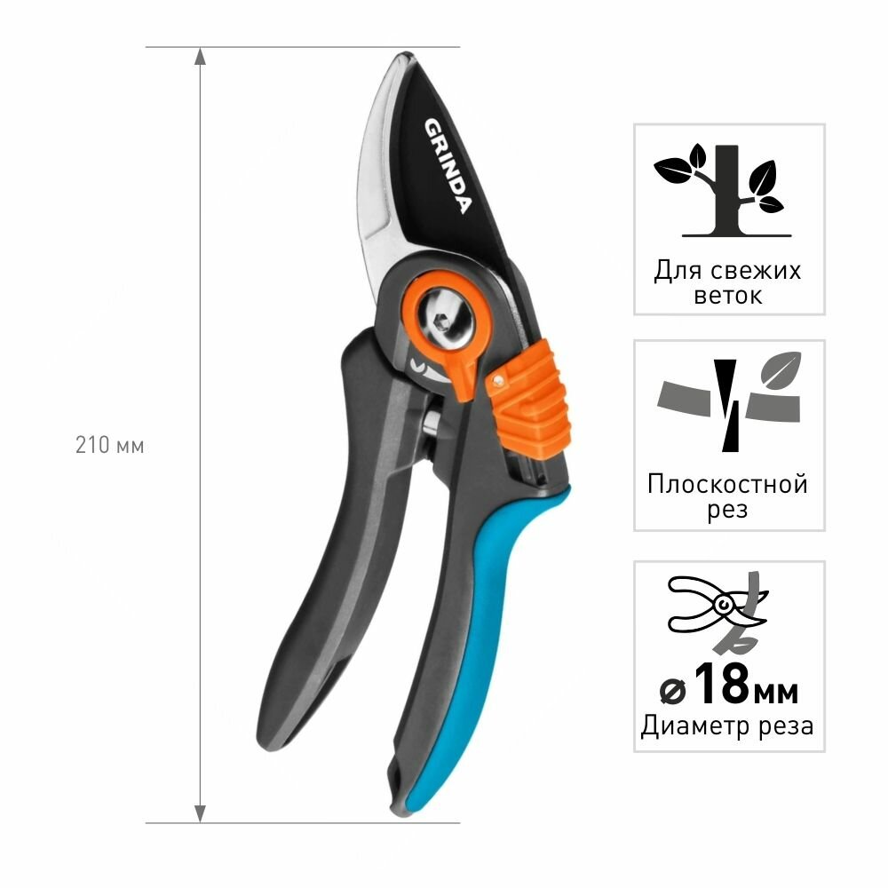 P-59 Секатор с двухкомпонентными рукоятками, плоскостной, 210 мм, GRINDA PROLine интересное: