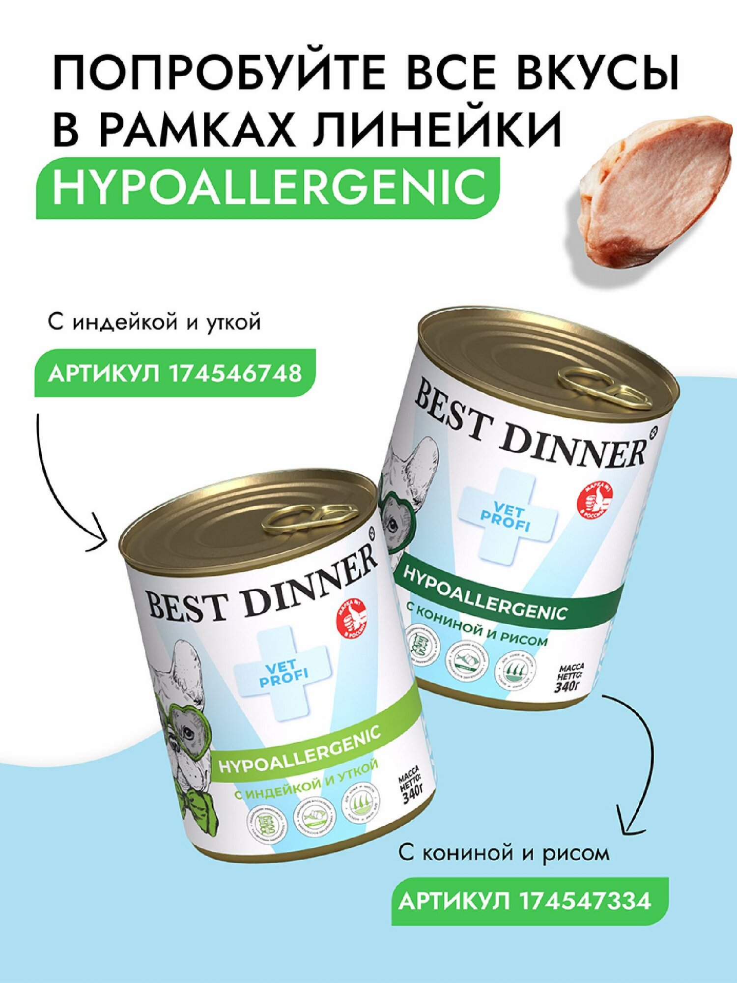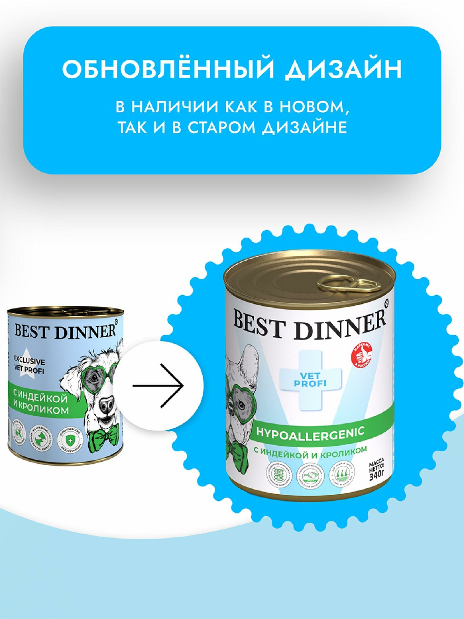 Best Dinner Консервы для собак Exclusive Hypoallergenic с индейкой и кроликом 7635 0.340 кг 42015 (2 шт) интересное: