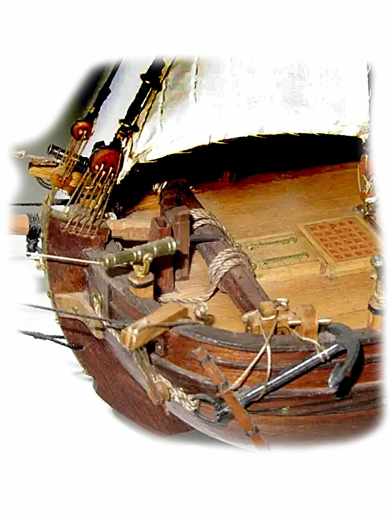 | Комплектация | -деревянные пластины с вырезанными лазером деталями / которые держатся в пластинах перемычками шириной 0,5 мм; - литые из металла / черненные пушки и якоря; - фототравленные из латуни детали; - тонкая х/б ткань и выкройки для пошива парусов; - детали рангоута; - подробная цветная пошаговая фотоинструкция для сборки корпуса; - подробная инструкция по постройке / чертежи / схемы / спецификация |
