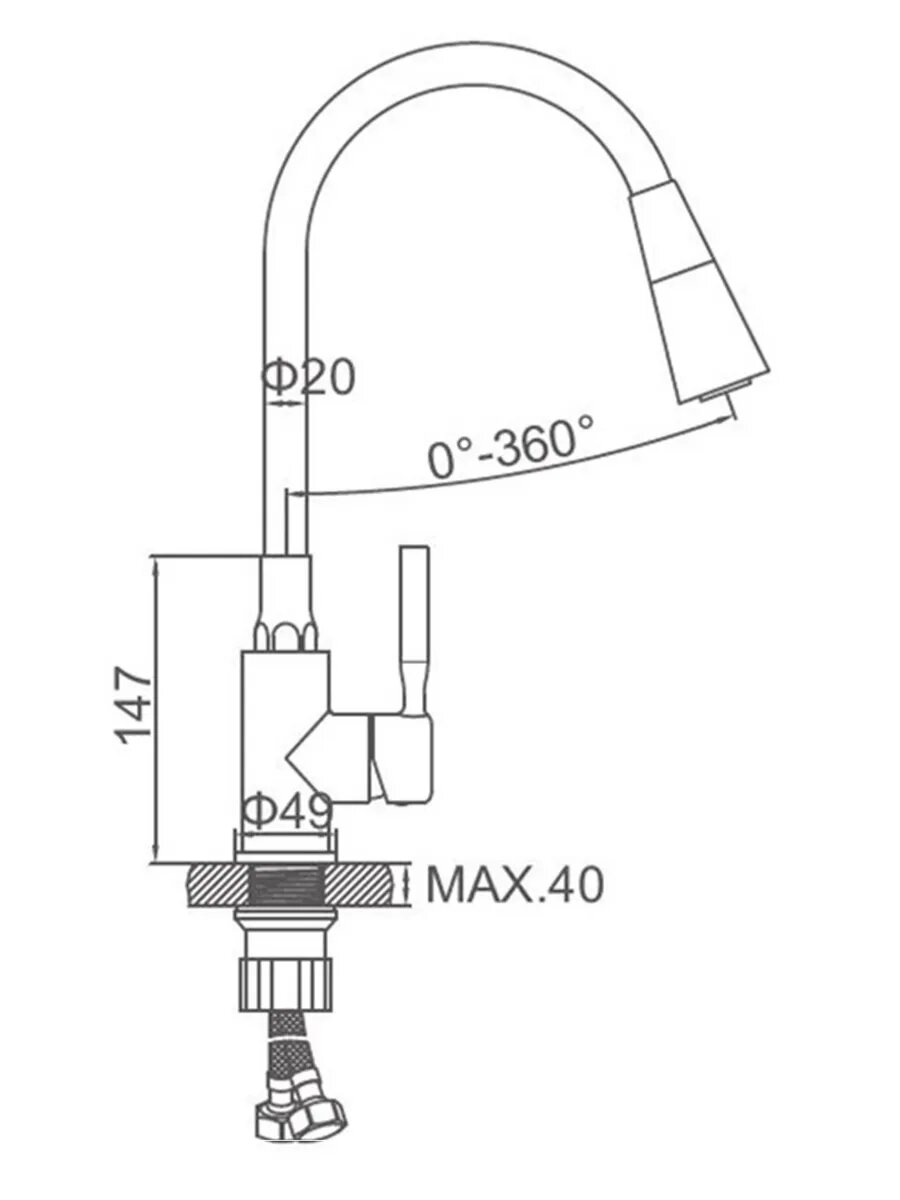 Смеситель кухонный с гибким силиконовым изливом серый A9890T-1