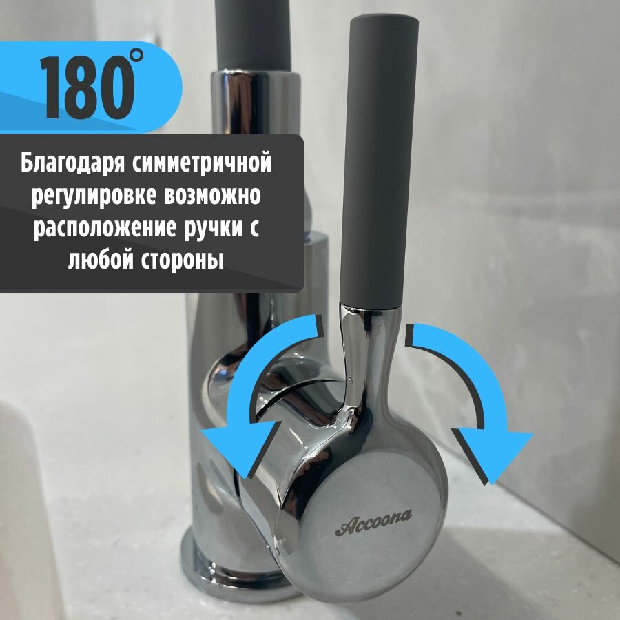 Смеситель для кухни Accoona A9890T-1, однорычажный, силиконовый излив, серый/хром Accoona 6245940 .