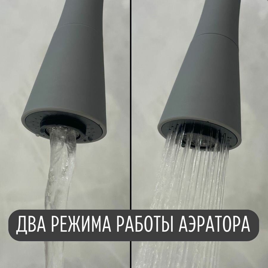 Смеситель кухня силиконовый излив двухрежимный (35) Латунь Серый+Хром Accoona A9890T-1 (АС4) (АС7`)