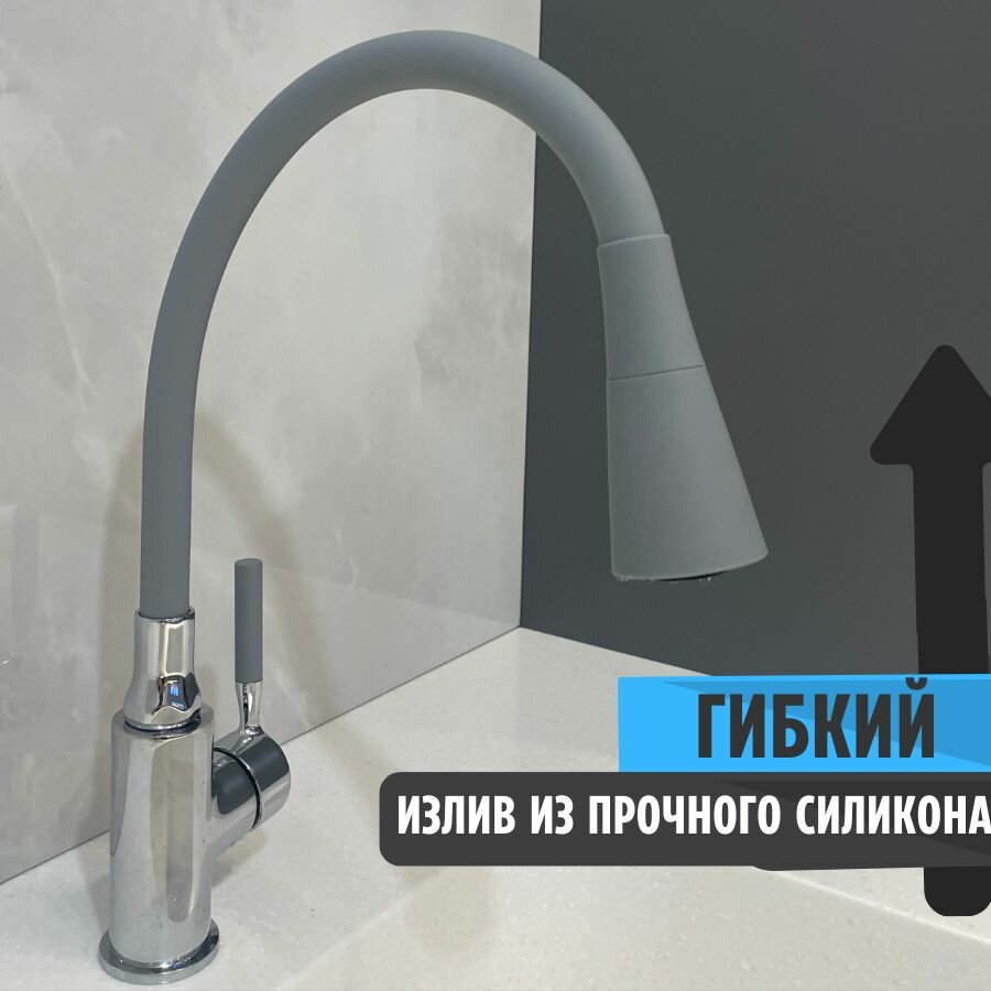 Купить Смеситель кухонный с гибким силиконовым изливом серый A9890T-1